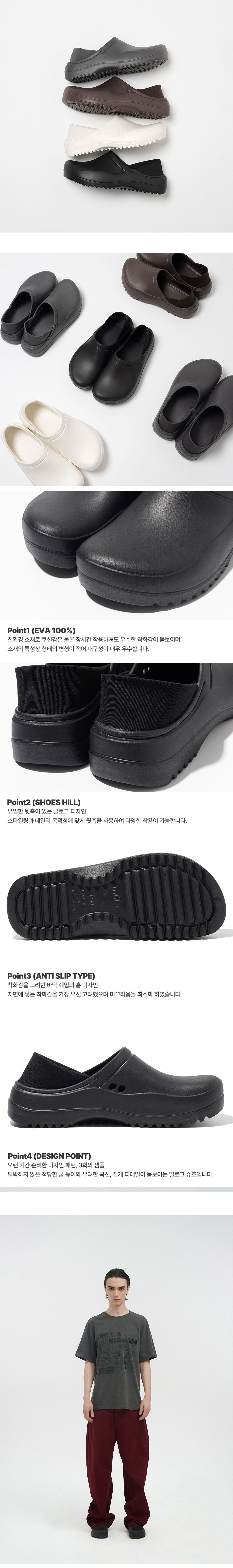 -4회의 디테일 수정 진행 후 금형을 진행한 밀로만의 독자적인 클로그 디자인 -유일한 밴드 디테일로 쉽게 벗겨지지 않는 클로그 -EVA 소재를 사용하여 마모에 강하며 내구성 및 충격 흡수가 매우 우수 -폴리에스터 원단의 립 사용으로 뒷축의 복원성과 탄성력이 좋음 -다양한 코디 매칭과 스타일링 확장을 위해 신규 컬러 추가 출시 -310g의 매우 가벼운 무게, 전체적으로 여유 있는 발 볼 사이즈 -사이즈 별 5mm 크게 제작하여 정 사이즈 추천 (뒷축을 활용해 구겨신는 고객님의 경우 1업 추천) -모델 스펙 남자 (에릭) 186cm/ 65kg 피팅 사이즈 280 여자 (엔젤) 176cm / 50kg 피팅 사이즈 260