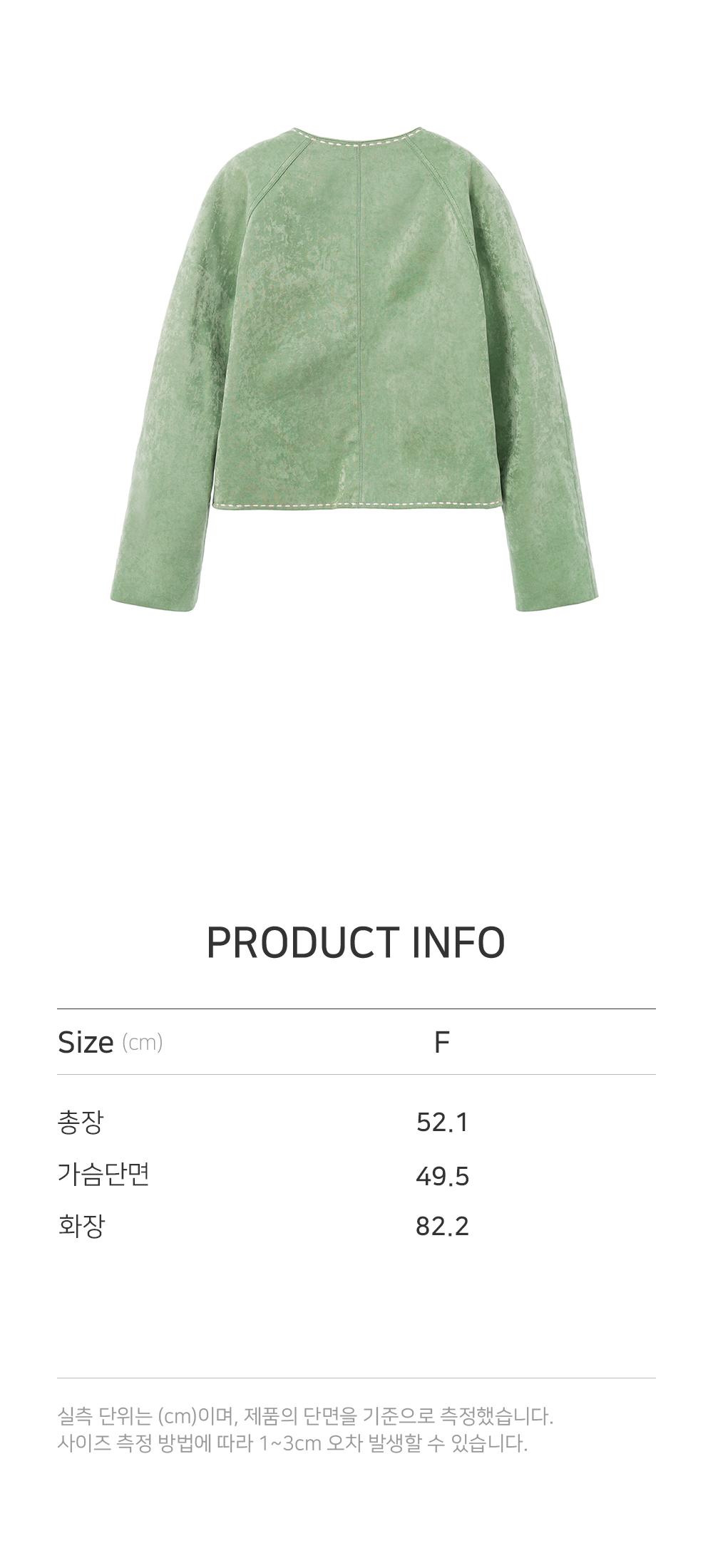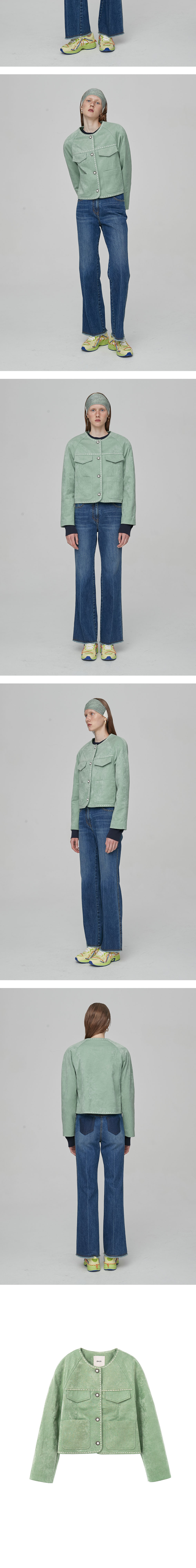 - 브로케이드 느낌의 인조 스웨이드 소재를 사용하여 특이한 소재 외관으로 화려하게 완성됩니다. - 어깨에 나그랑 패드를 더해 자연스럽고 입체적인 숄더 라인을 연출해줍니다. - 흔치 않은 그린 컬러감으로 룩에 포인트를 주실 수 있는 자켓입니다. - 화이트 멜로 자수로 포인트를 더했습니다. - 진주 단추 클로징으로 빈티지한 무드를 더했습니다.