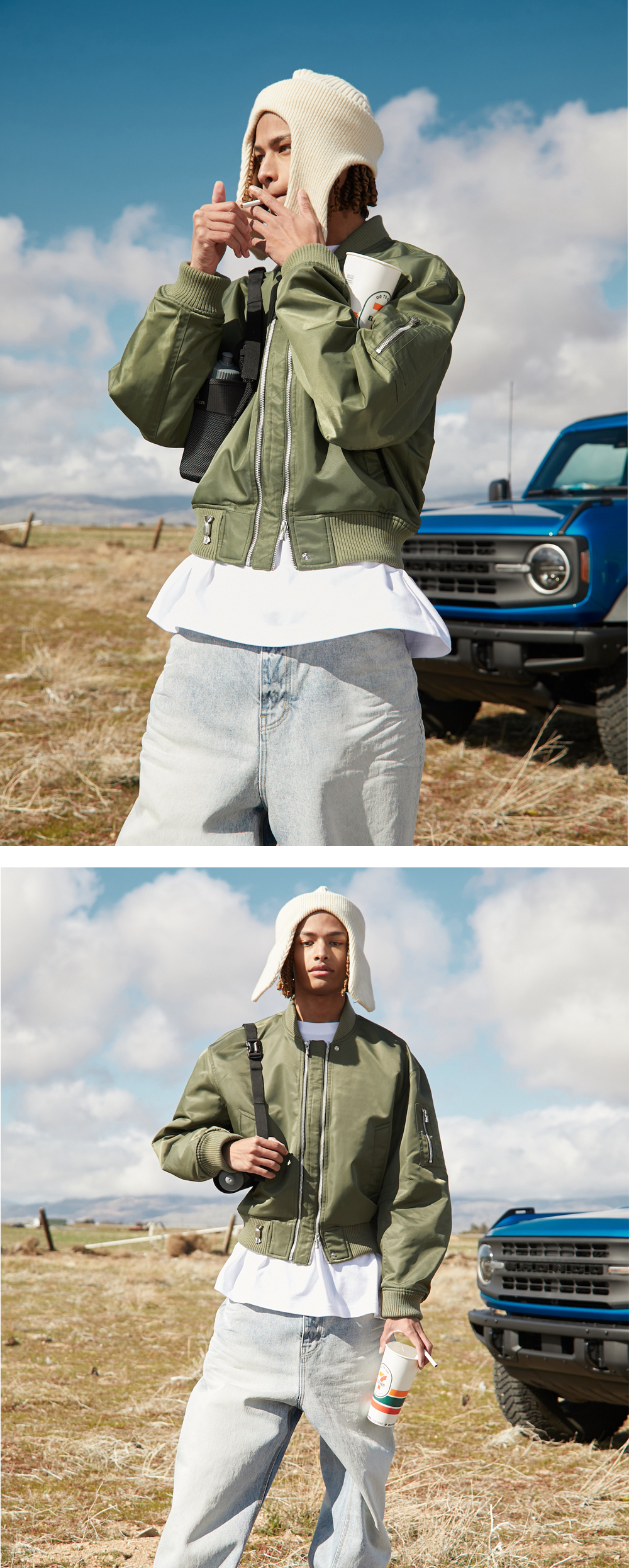 [KREAM 단독] 에스티유 더블 웨이 쇼트 봄버 카키