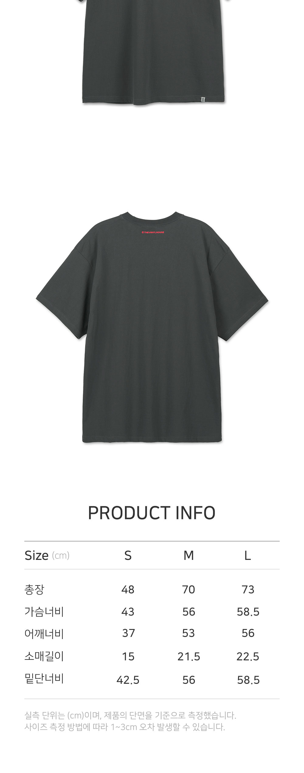 바이오 워싱 공정을 거친 16수 싱글 원단이 사용되어 두껍지만 부드러운 촉감이 특징입니다. 텐타 덤블 공정을 거쳐 축률을 최소화 하였습니다 S사이즈는 크롭한 기장으로 여성 전용 사이즈 이며 M,L 사이즈는 남녀 공용 사이즈 입니다.
