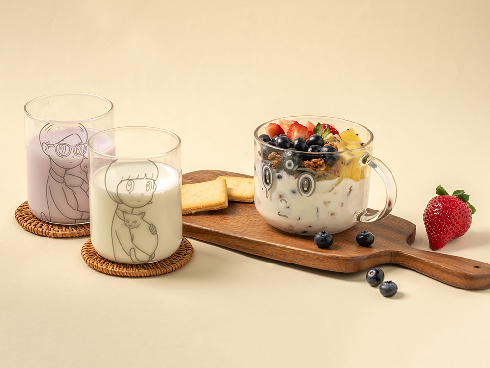 PBG에서 진행하는 유야 하시즈메의 개인전 기념 제작된 굿즈로 대표작 'eyewater' 속 캐릭터가 담긴 유리컵이다. 음료의 색에 따라 캐릭터의 라인이 돋보이는 제품으로 테이블에 귀여운 매력을 더해주며 두 개의 컵을 세트로 선물하기에도 좋다.