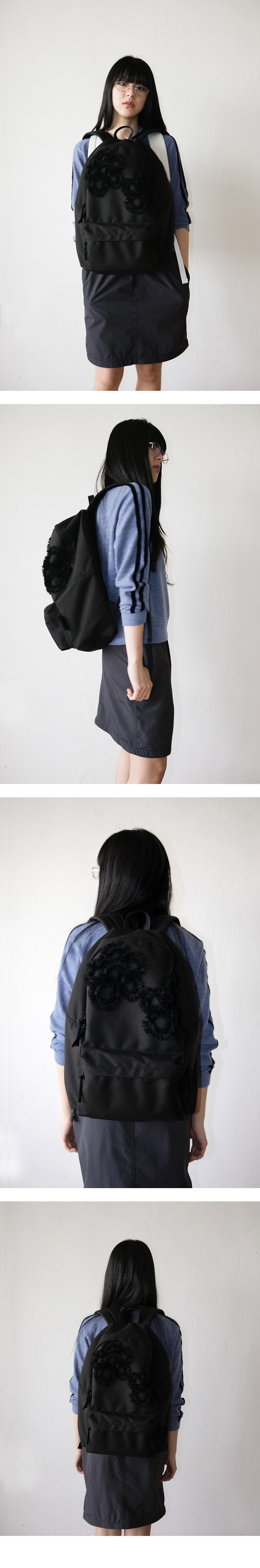 생긴스튜디오 우먼 플라워 레이스 백팩 블랙