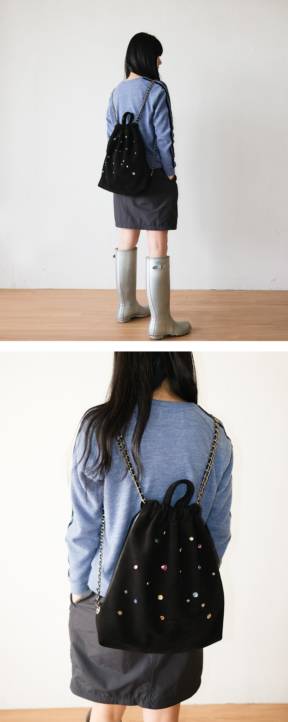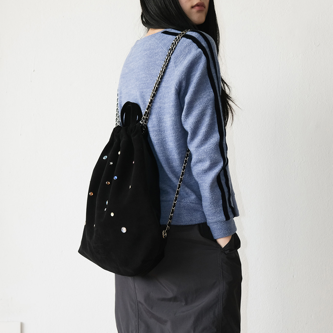 생긴스튜디오 우먼 유니버스 스웨이드 체인 백 블랙