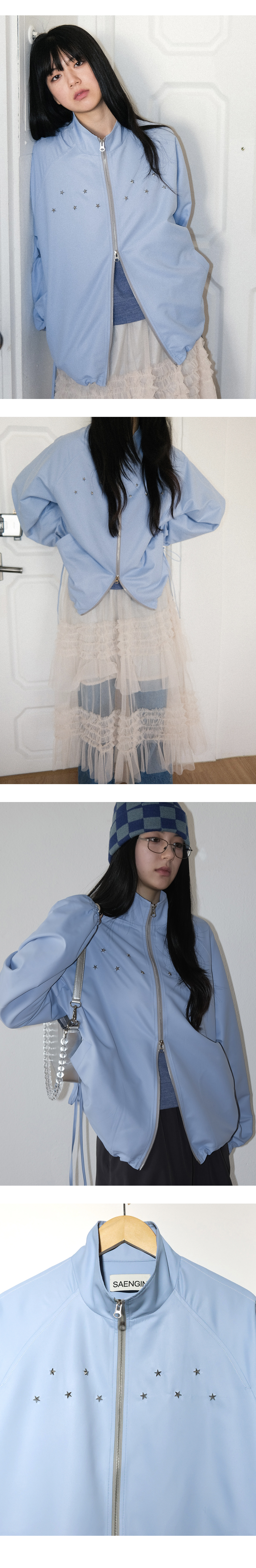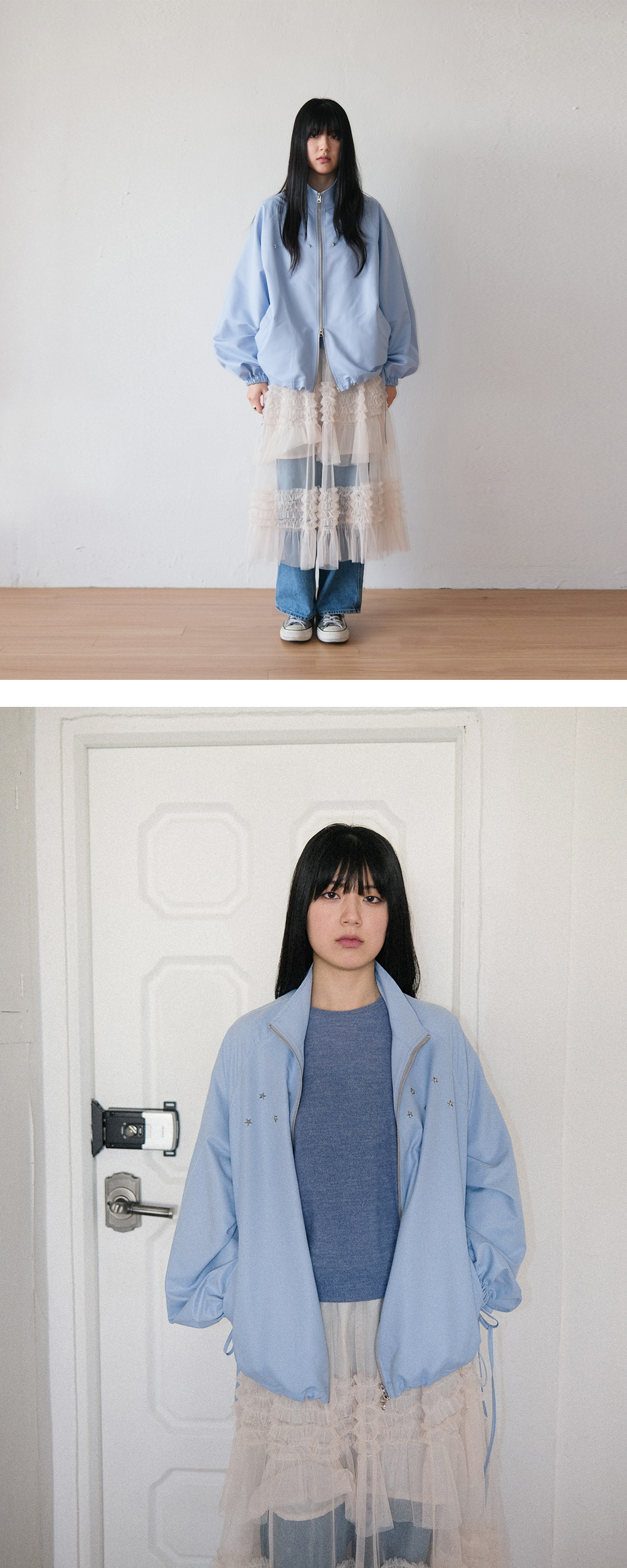 생긴스튜디오 우먼 셔링 리벳 윈드브레이커 블루