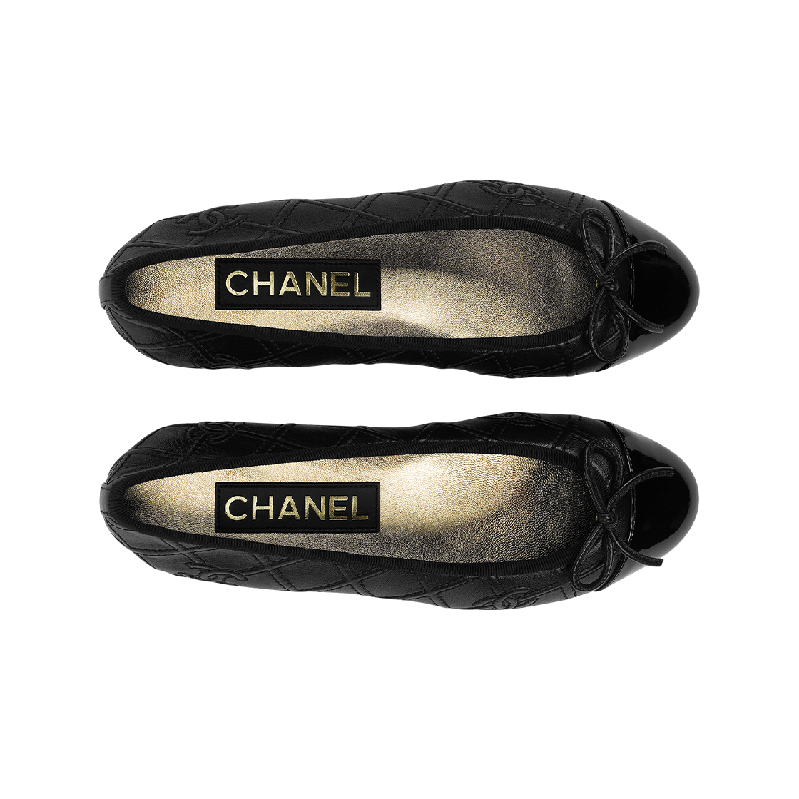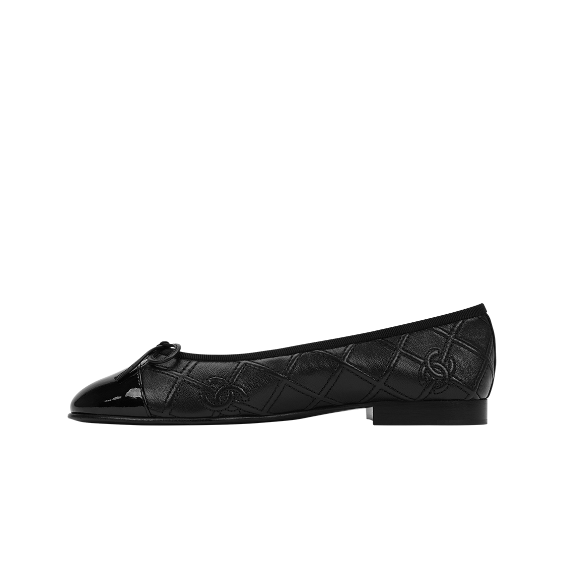 (W) Chanel Ballerina Flat Lambskin Patent Calfskin & Black