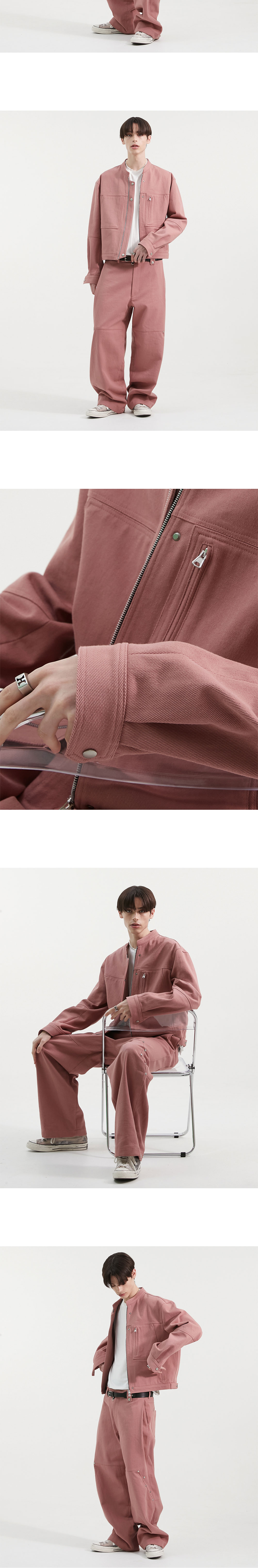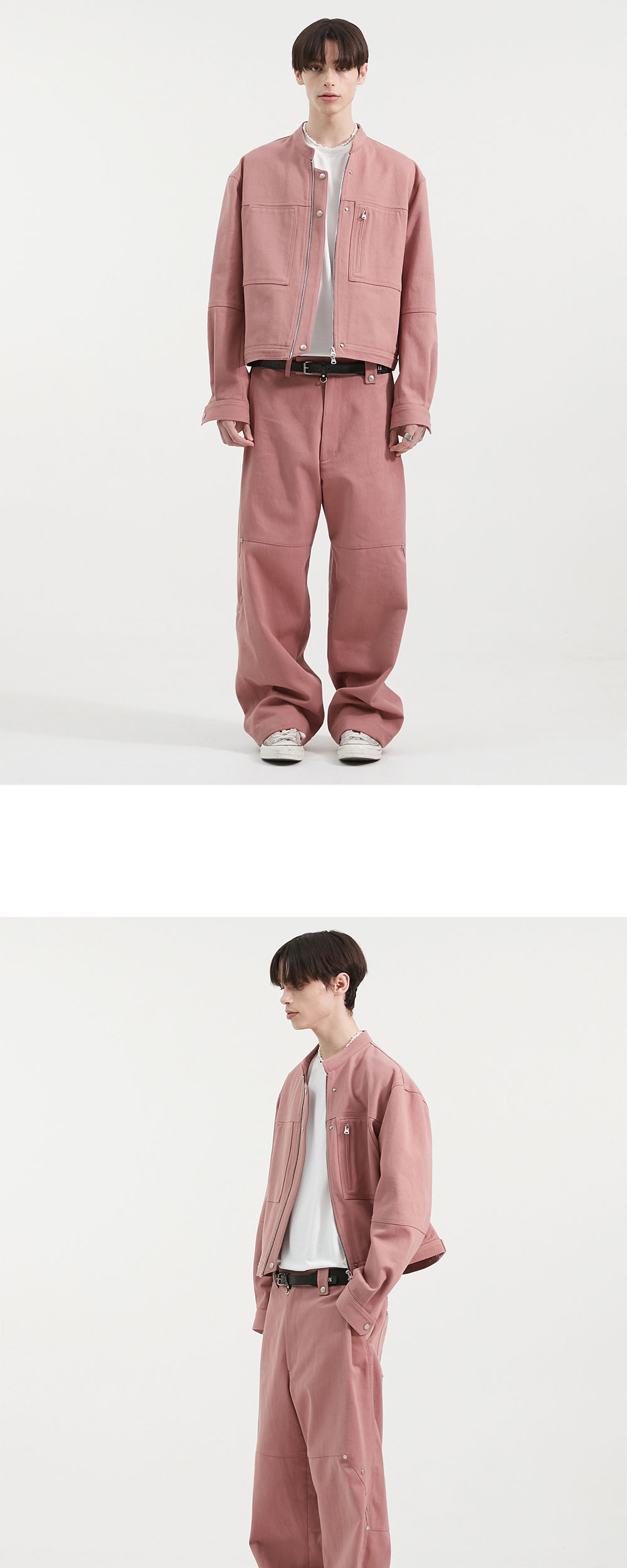 알렌느 카펜터 디테일 트윌 데님 바이커 자켓 인디안 핑크