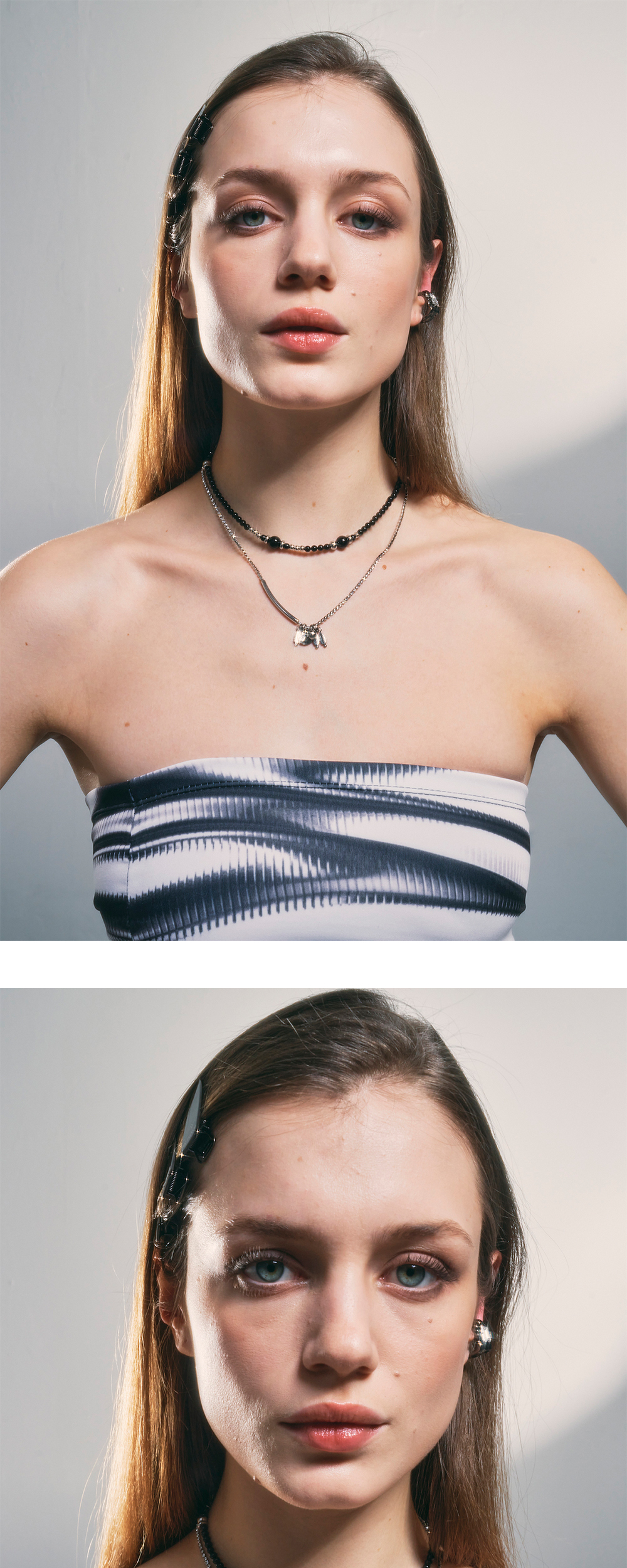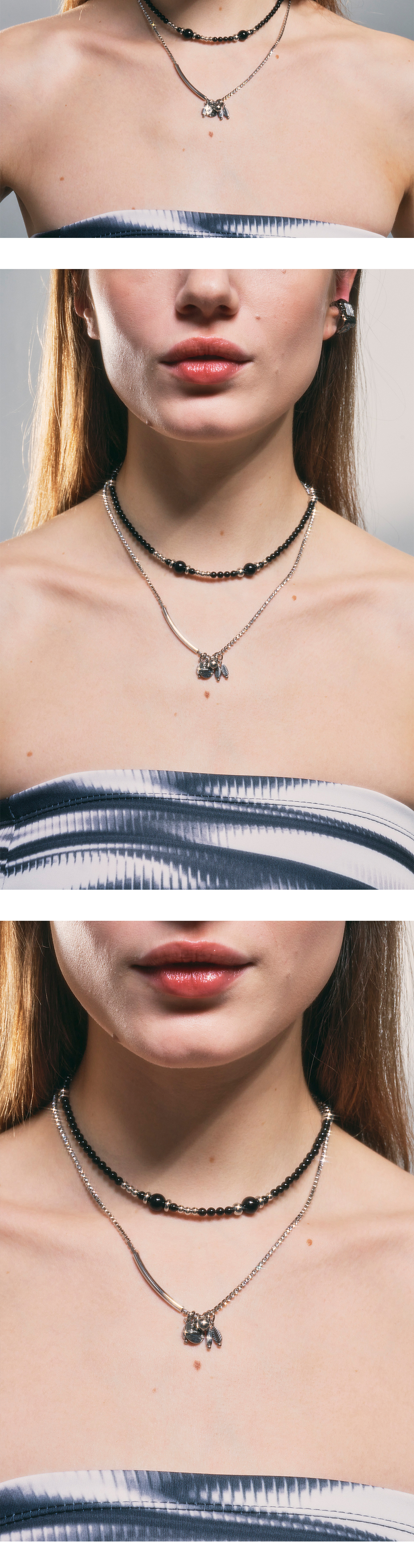 체인 뒤쪽에 위치한 볼 펜던트를 이용하여 자유롭게 길이 조절이 가능한 제품입니다.