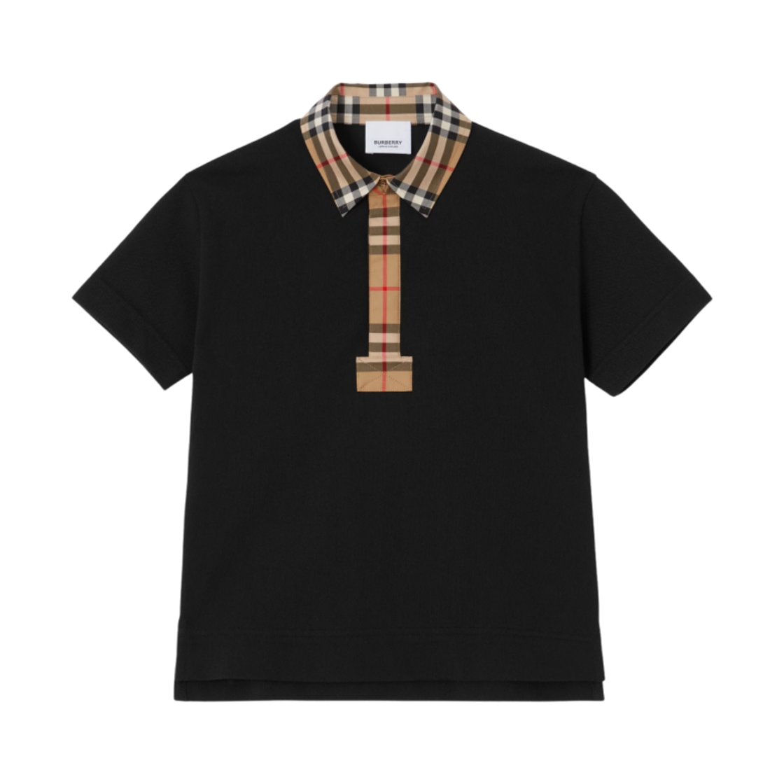 (키즈) 버버리 빈티지 체크 아이콘 트리밍 코튼 피케 폴로 셔츠 블랙