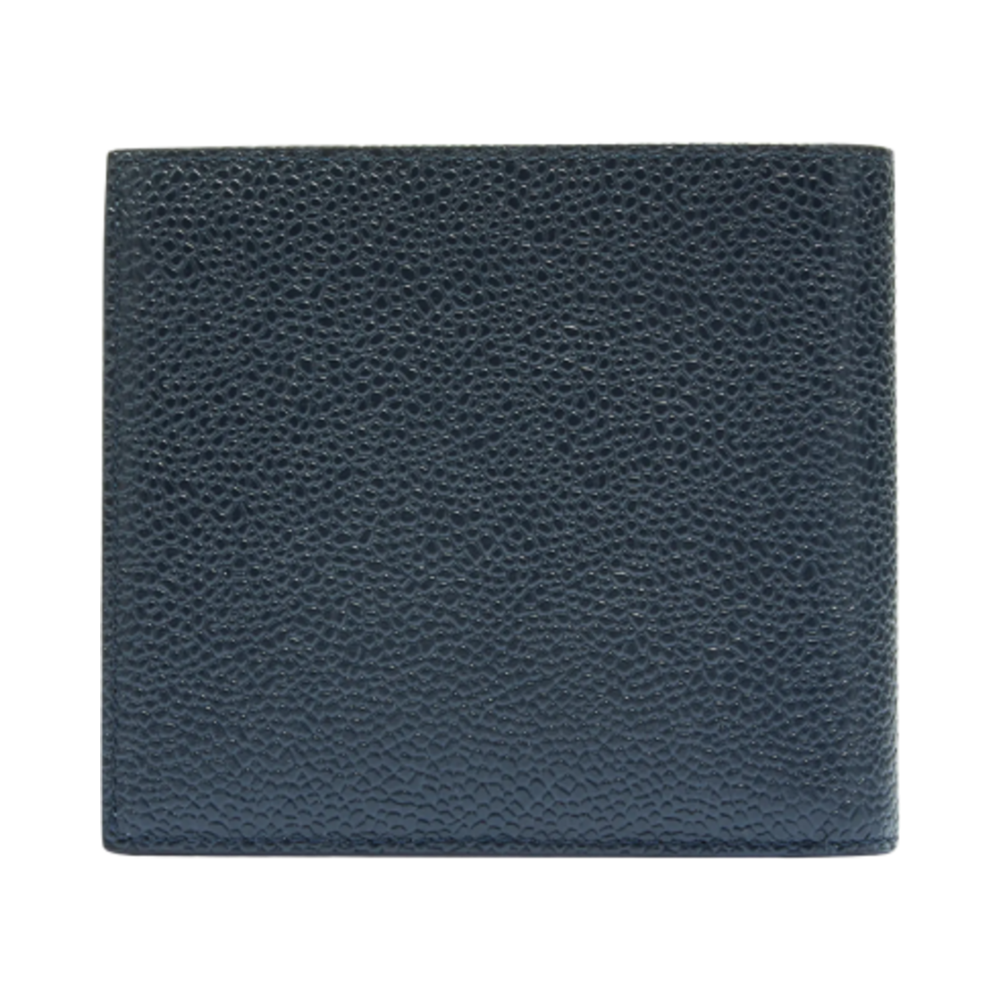 Thom Browne Pebble Grain Leather 4-Bar Applique Stripe Bill Fold Wallet Navy