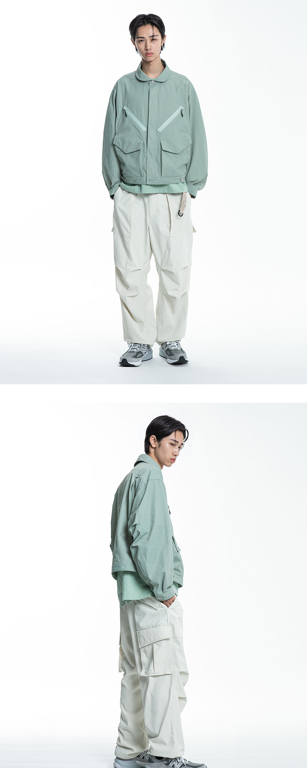 -USAF 플라이트 수트의 상징적인 요소를 담아 재킷 디자인으로 재해석 -상징적인 V라인 지퍼 포켓 디자인을 실용적으로 설계 -YKK 아쿠아 가드 지퍼 포켓과 하단 입체포켓. 손을 넣을 수 있는 사이드 포켓으로 설계하여 수납력 극대화 -부드러운 인상의 라운드 칼라 -컴팩트한 기장과 루즈 실루엣 -트라이 앵글 슬리브 설계로 활동성 극대화 -깔끔한 인상의 히든 플라켓 -소매 커프스와 허리 벨트에는 실루엣 조절이 가능한 어저스터 디테일 -고밀도 트윌조직으로 재직된 나일론, 코튼 혼방 소재