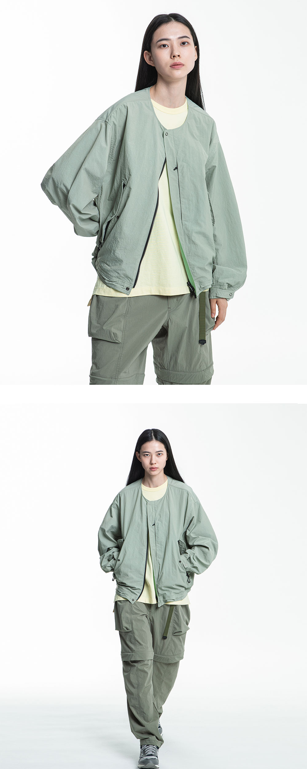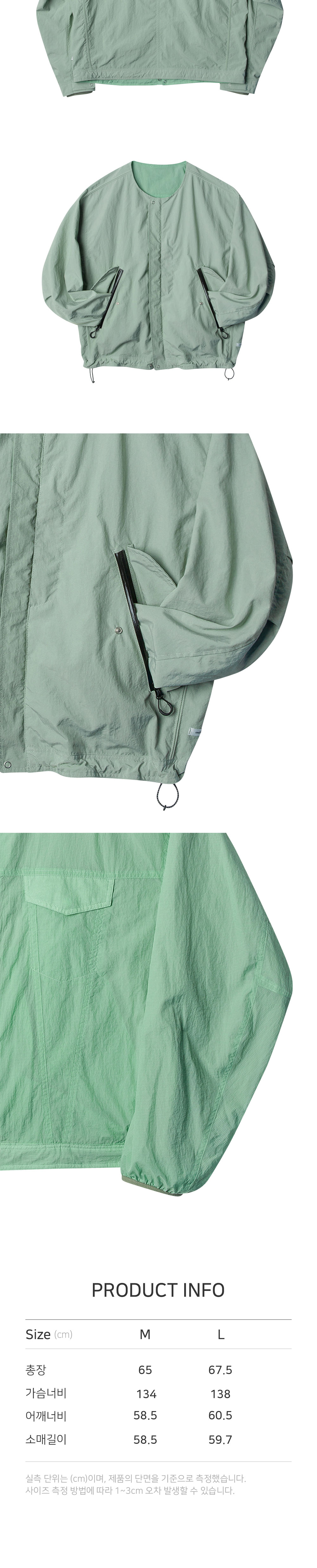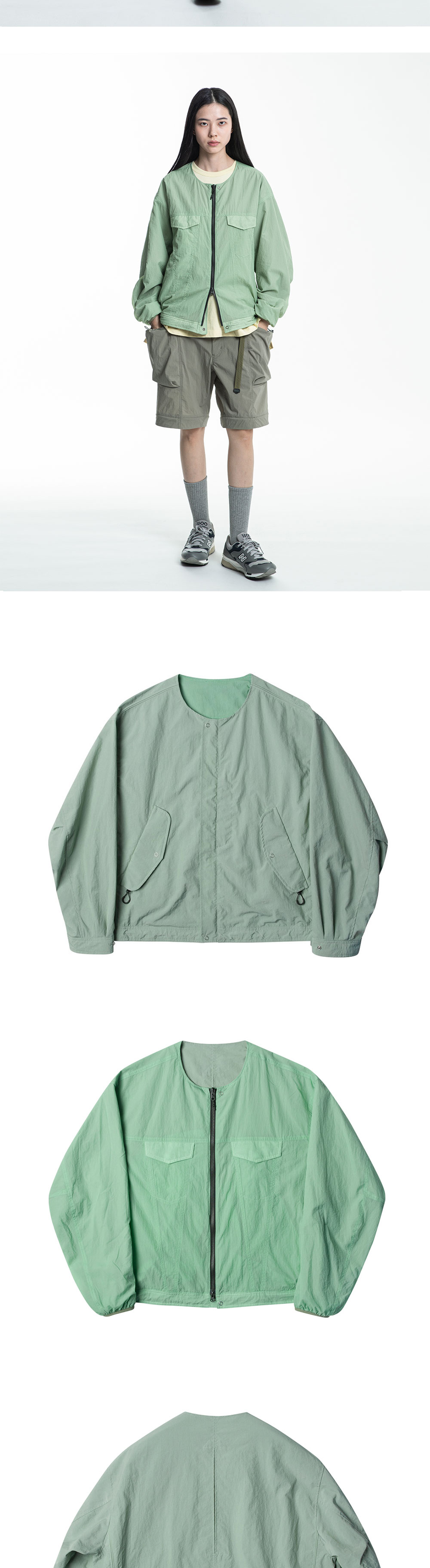 -USN 덱 재킷의 원형에서 상징적인 디테일을 재해석 -리버서블 타입으로 겉감은 단단한 터치의 나일론 소재, 안감은 경량 나일론 소재로 상반되는 인상의 소재 구성 -컴팩트한 기장의 루즈 실루엣 -여유롭고 우아한 볼륨의 소매 설계 -시원한 인상의 칼라 리스 -가슴에 위치한 히든 지퍼 포켓과 허리 지퍼 포켓으로 구성 -어깨, 사이드 패널의 절개 부위에 파이핑 코드를 넣어 입체적으로 제작 -소매 커프스 사이즈 조절 가능한 어저스터 -밑단 사이즈 조절이 가능한 스트링 어저스터 -앞 여밈 2-way 리버서블 지퍼