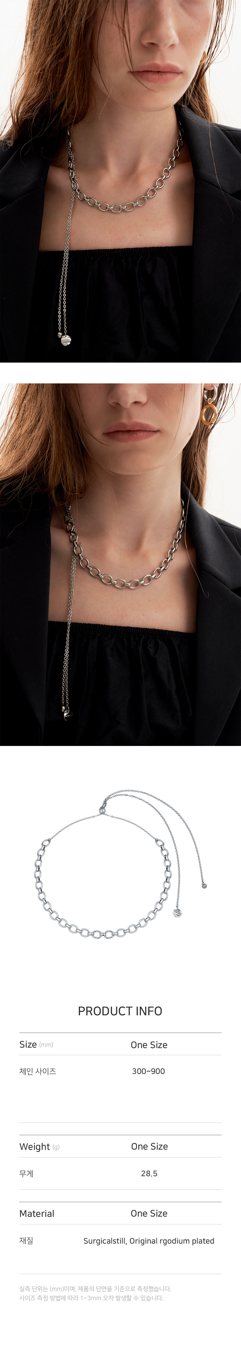체인 뒤쪽에 위치한 볼 펜던트를 이용하여 최대 90cm까지 자유로운 길이조절이 가능합니다.