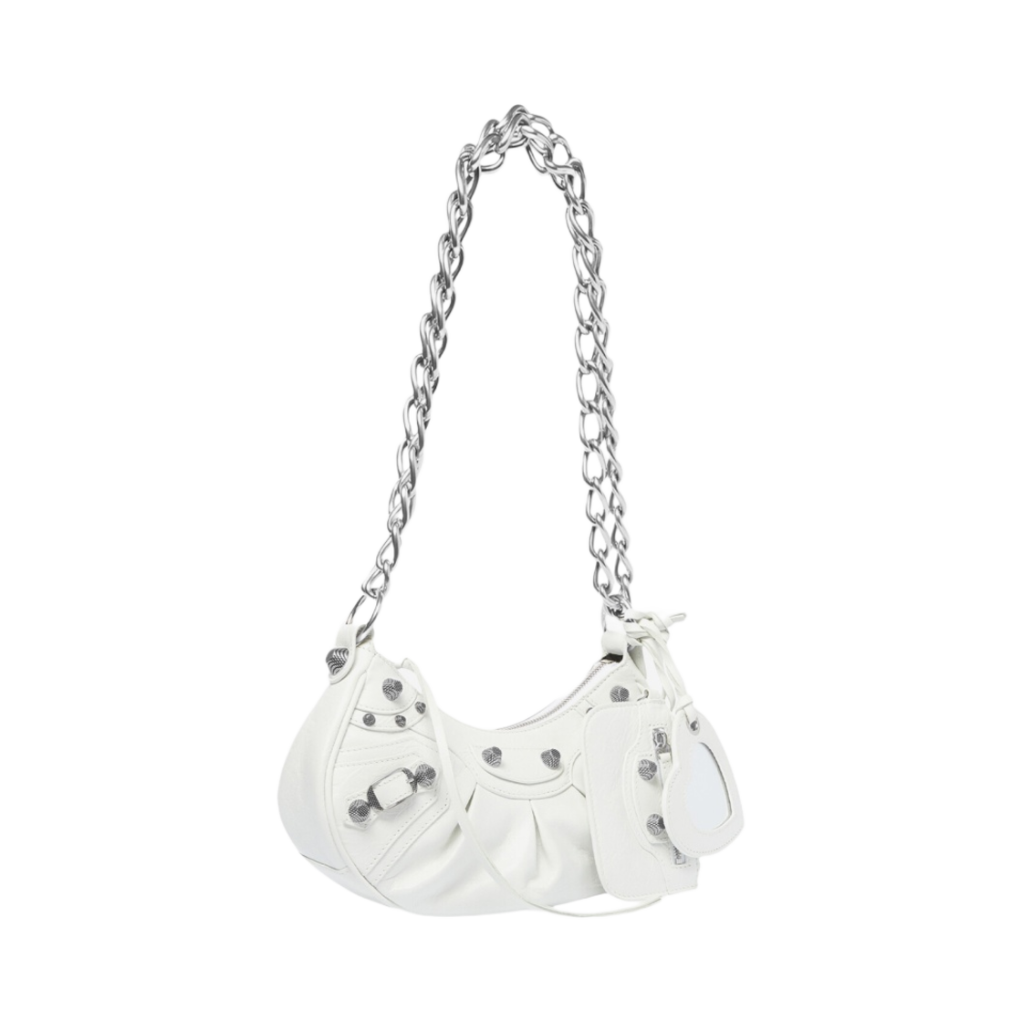 Balenciaga Arena Lambskin Le Cagole XS Shoulder Bag with Chain Optic White