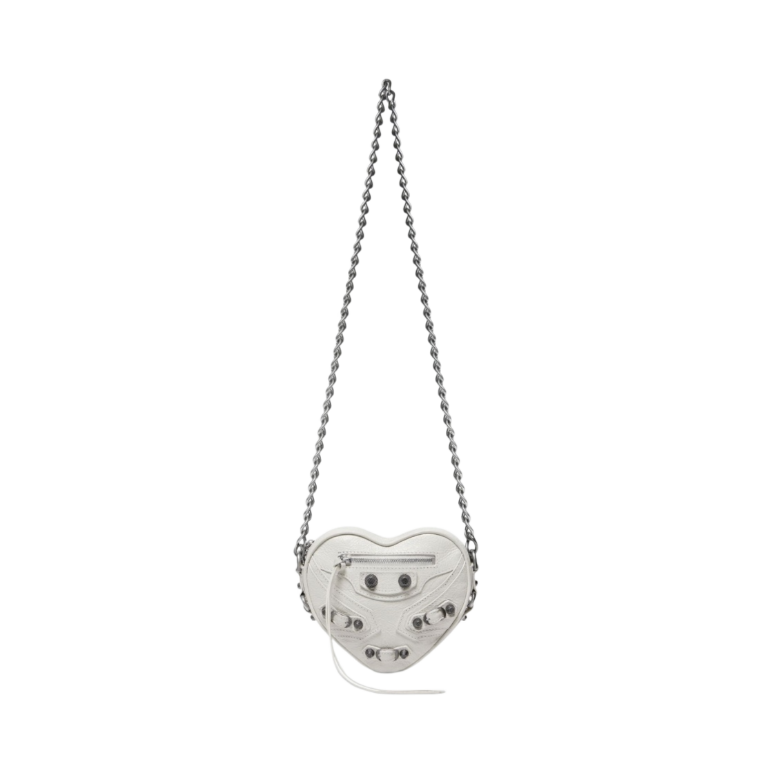 Balenciaga Arena Lambskin Aged Silver Hardware Le Cagole Mini Heart Bag Optic White