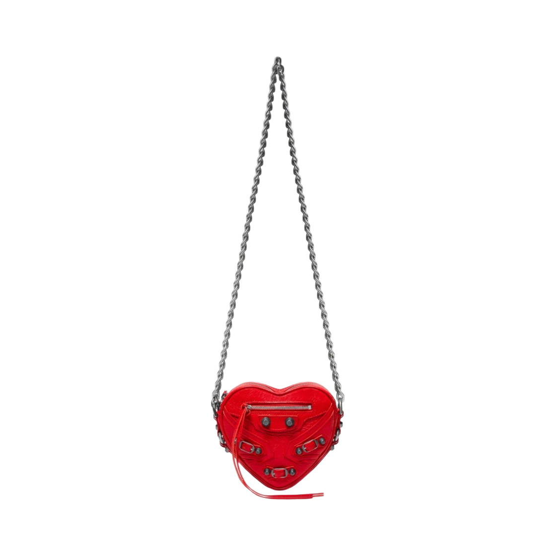 Balenciaga Arena Lambskin Aged Silver Hardware Le Cagole Mini Heart Bag Red