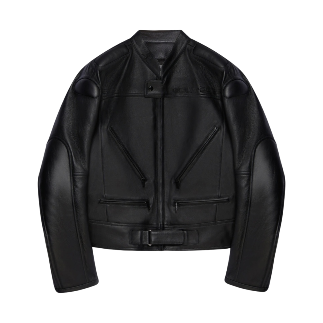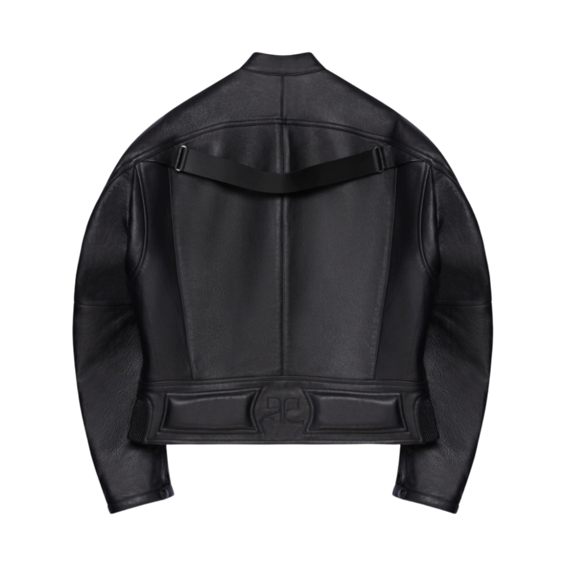 (W) 꾸레쥬 레이서 블랙 레더 자켓 블랙