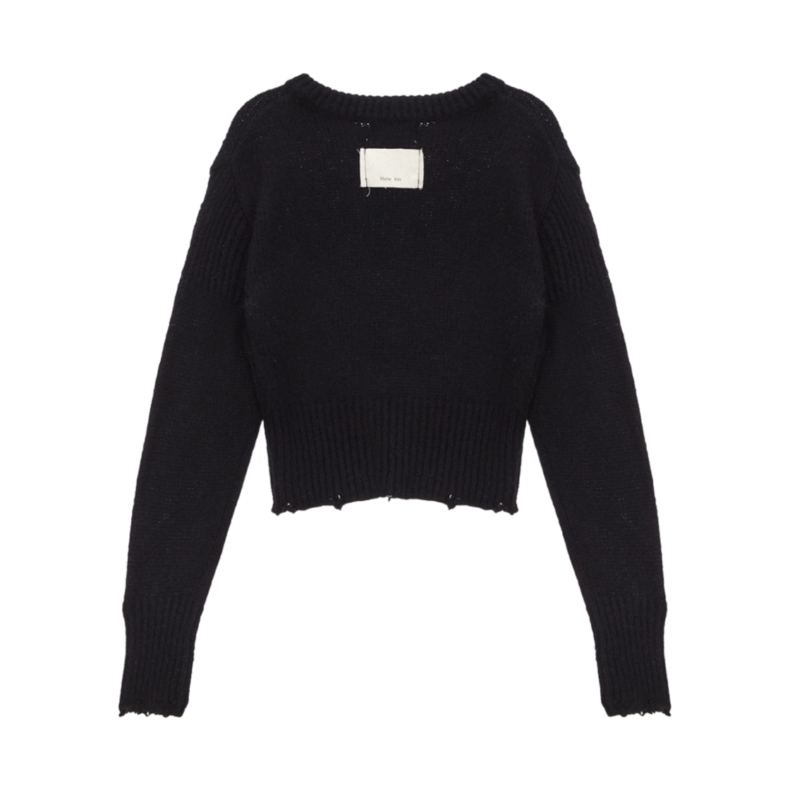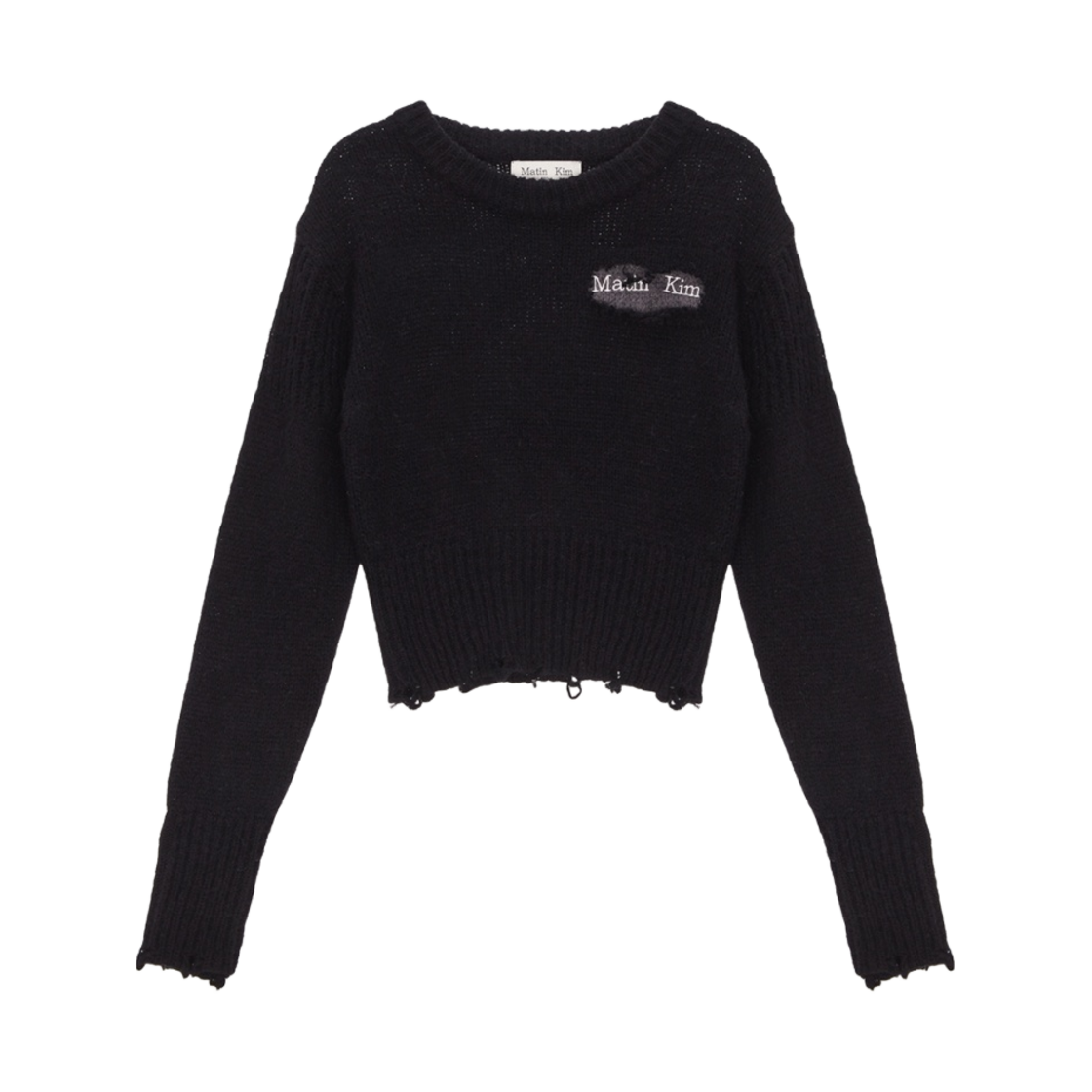 (W) Matin Kim Damage Solid Knit Pullover Black