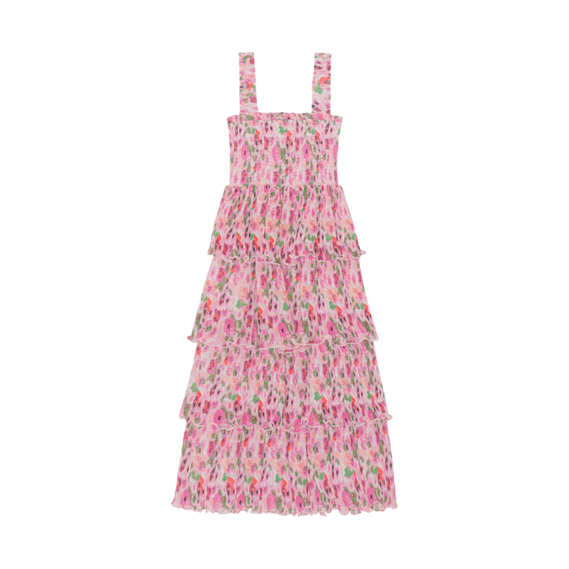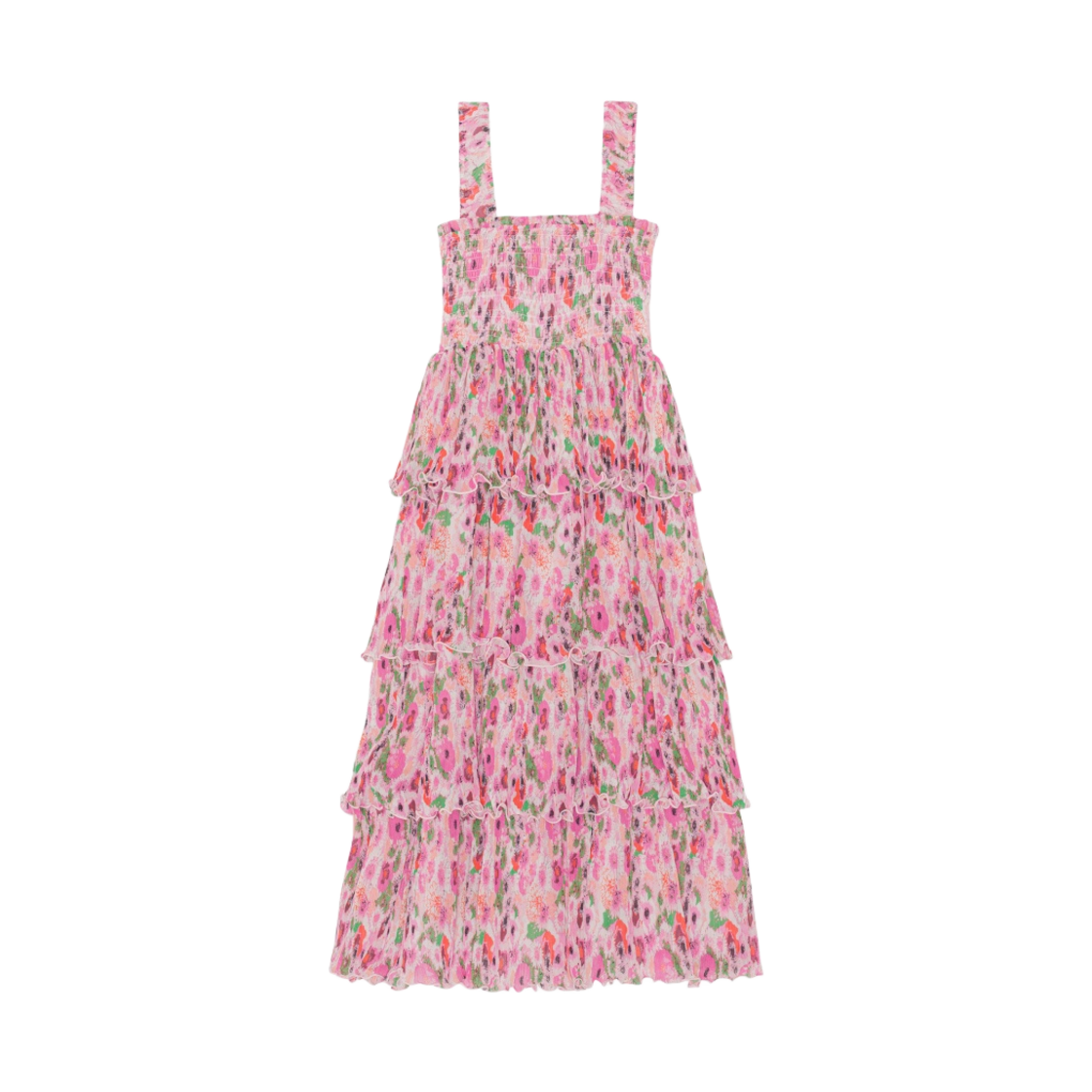 (W) Ganni Pleated Georgette Smock Midi Dress Sugar Plum