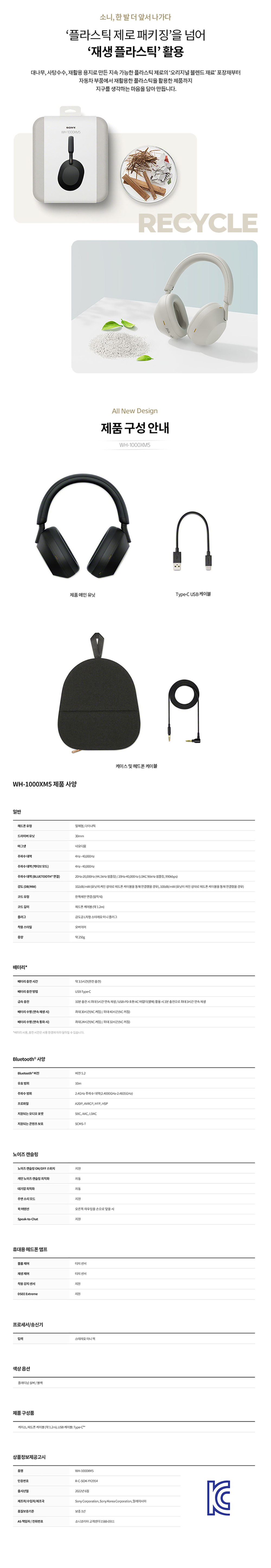 소니 WH-1000XM5 미드나잇 블루 (소니 코리아 정식 발매 제품)