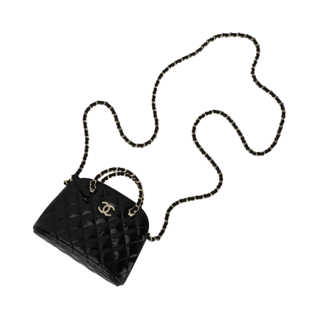 샤넬 체인 달린 미니백 페이턴트 카프스킨 & 골드 메탈 블랙