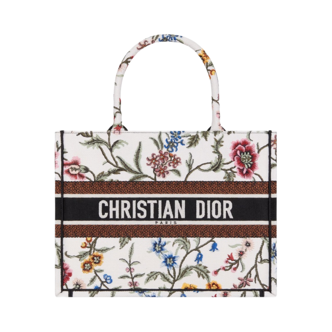 Dior Medium Book Tote Bag White Multicolor Dior Petites Fleurs Embroidery