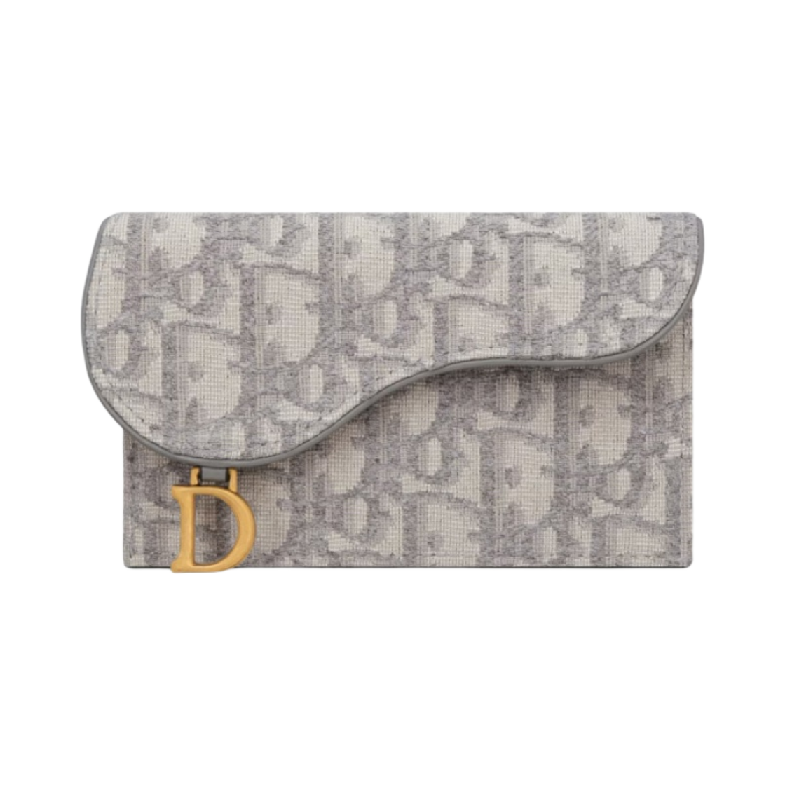 Dior Saddle Flap Compact Zipped Card Holder Grey Dior Oblique Jacquard