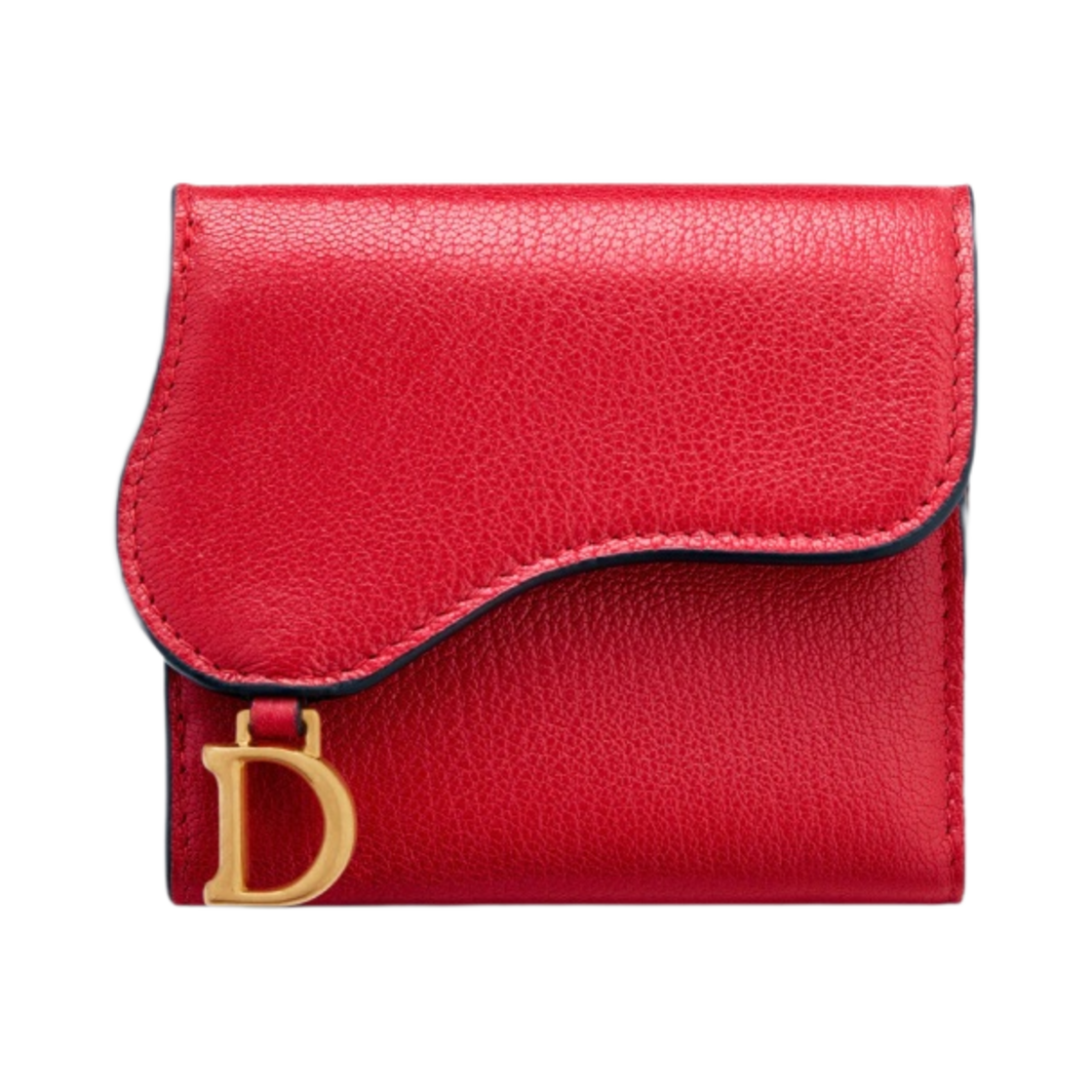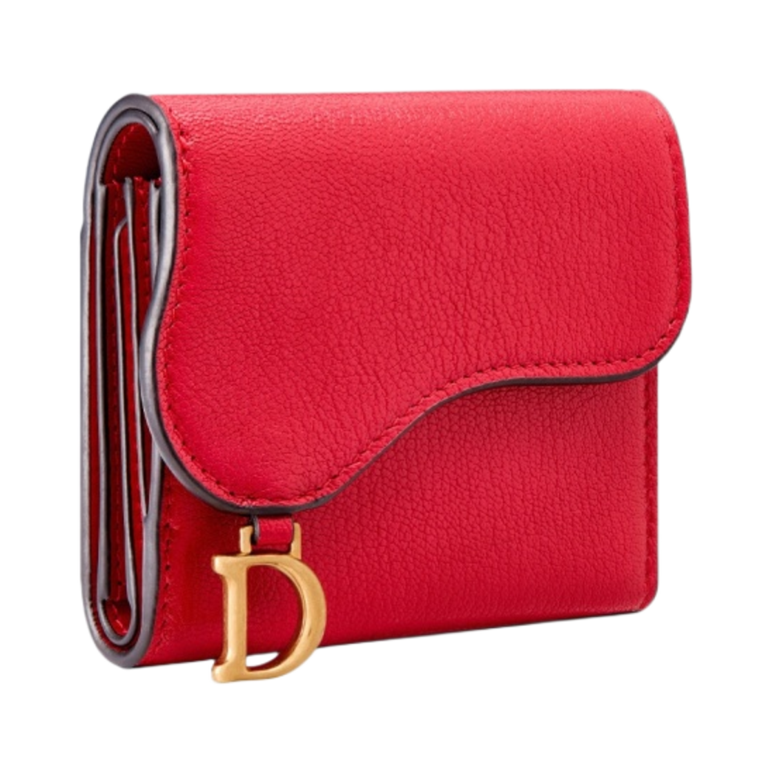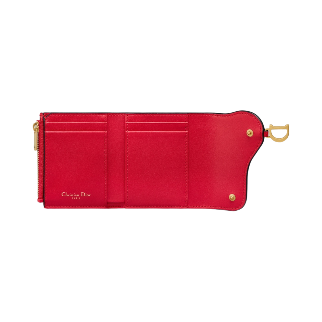 Dior Saddle Lotus Wallet Goatskin Scarlet Red