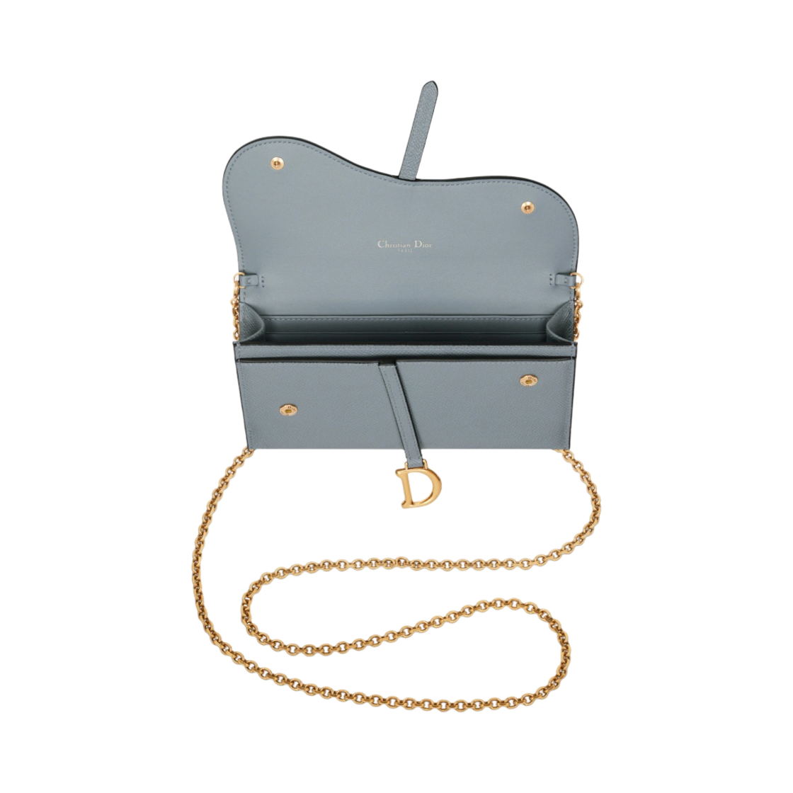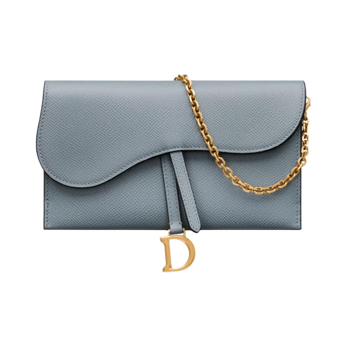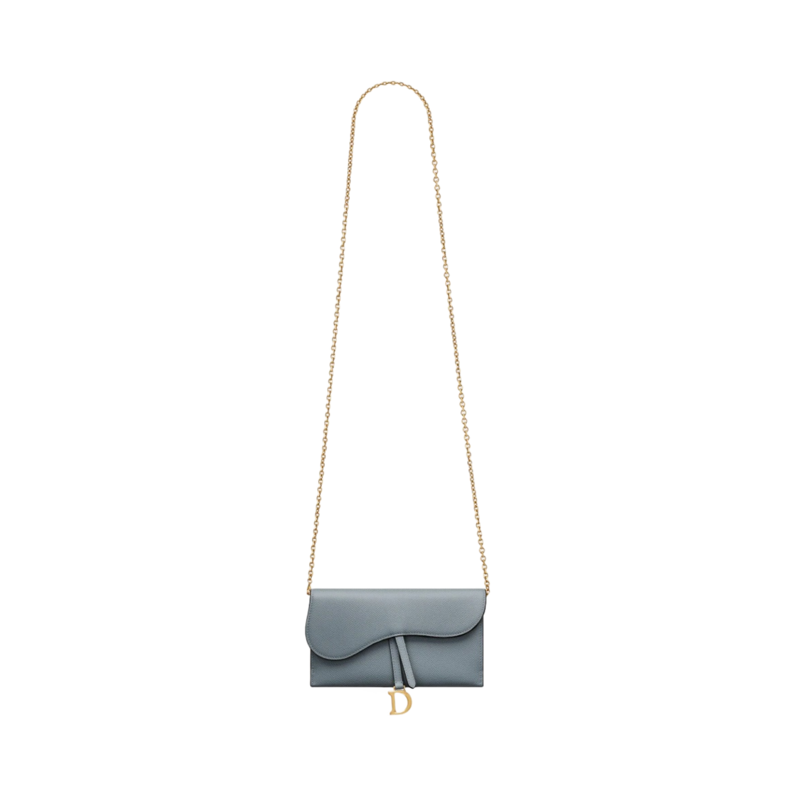 Dior Long Saddle Wallet with Chain Grained Calfskin Cloud Blue