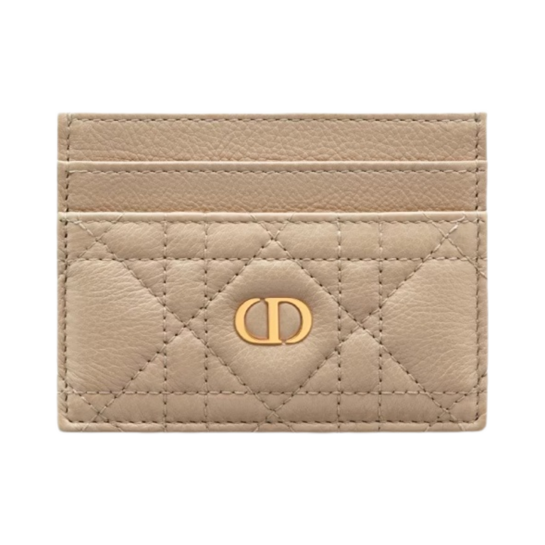 Dior Caro Five Slot Card Holder Supple Cannage Calfskin Sand