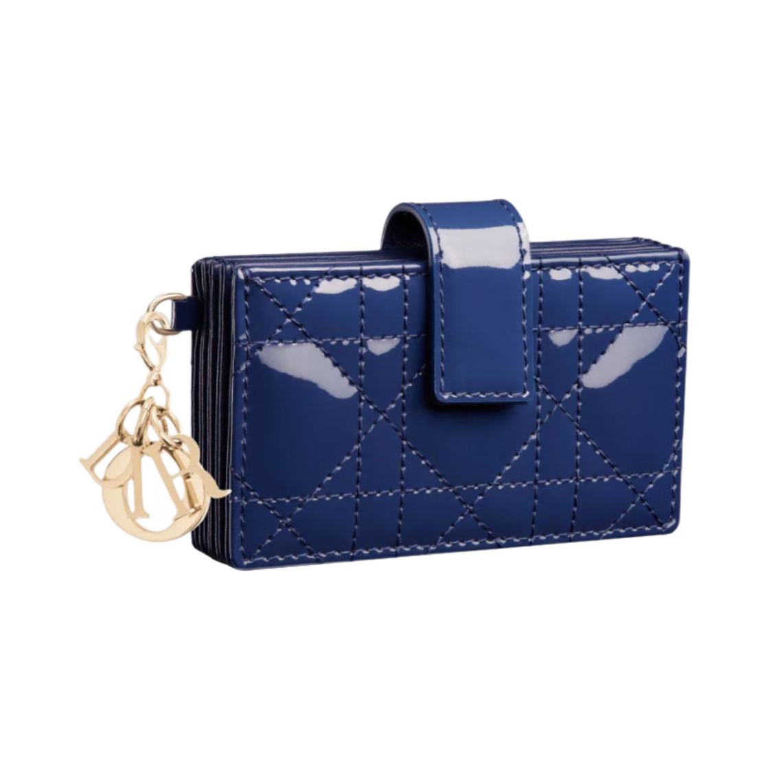 Dior Lady 5-Gusset Card Holder Patent Cannage Calfskin Royal Blue
