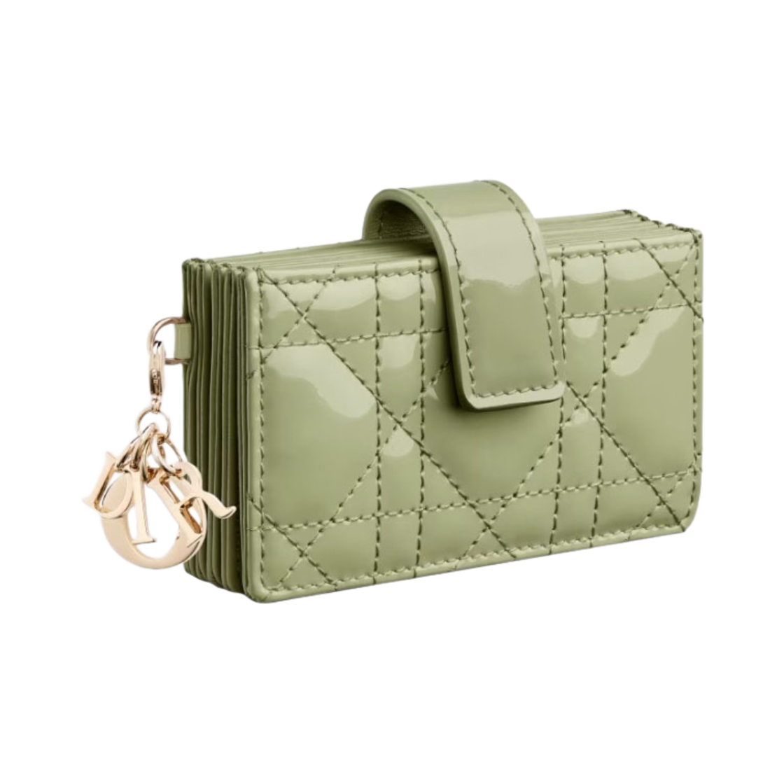 Dior Lady 5-Gusset Card Holder Patent Cannage Calfskin Ethereal Green