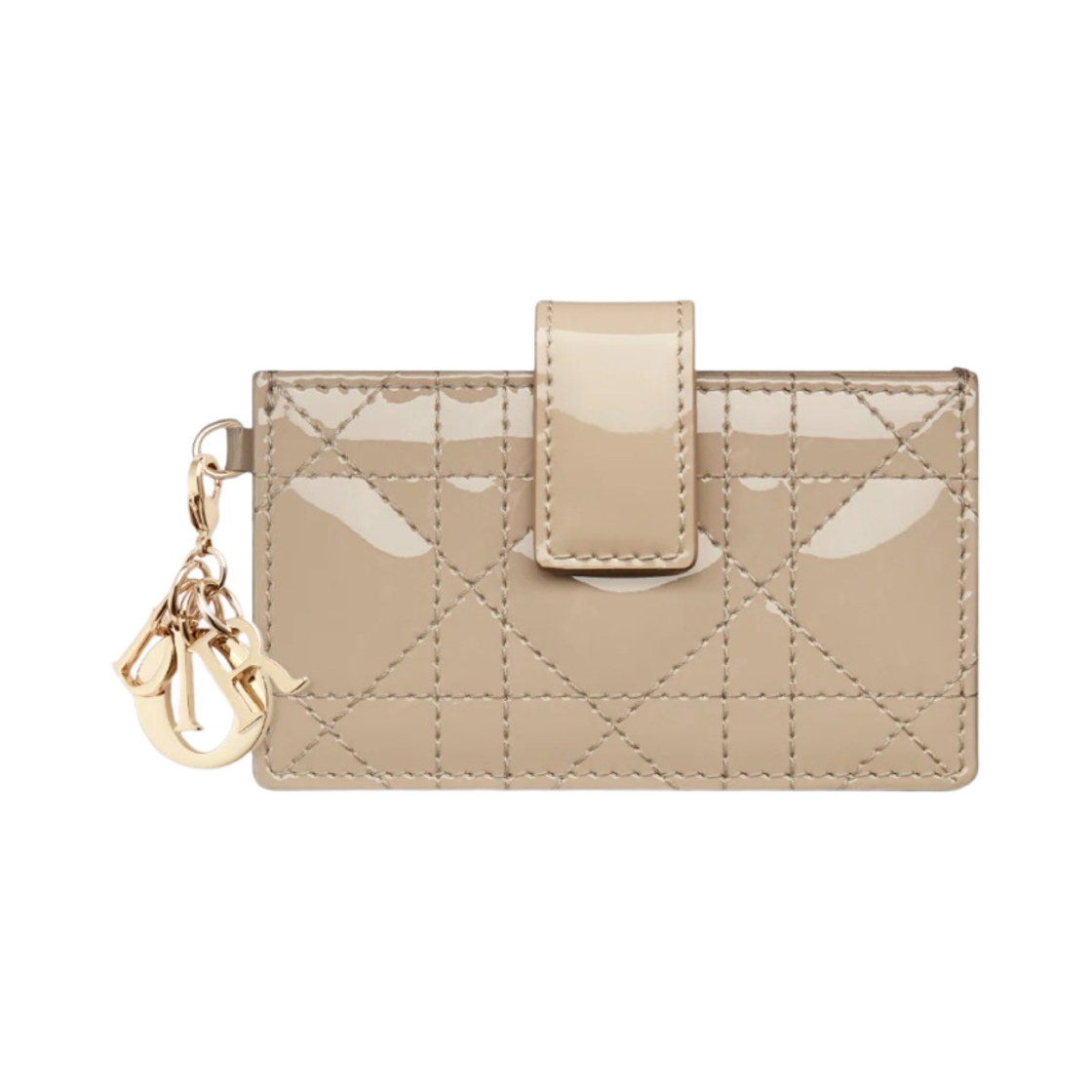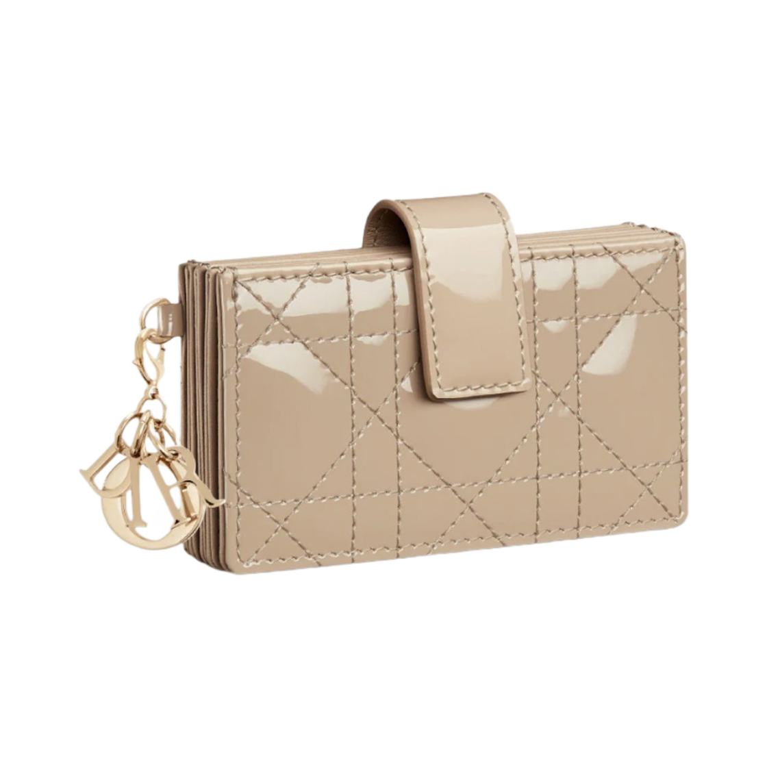 Dior Lady 5-Gusset Card Holder Patent Cannage Calfskin Sand