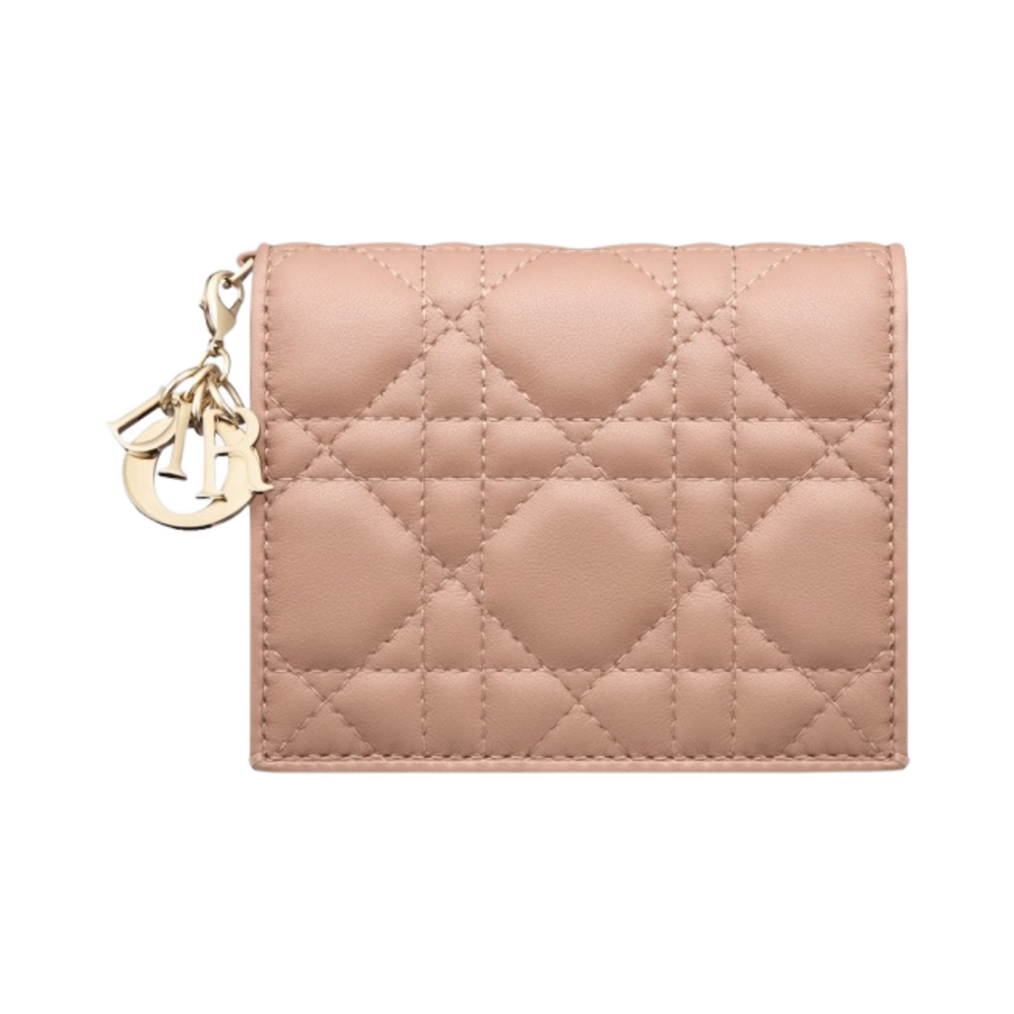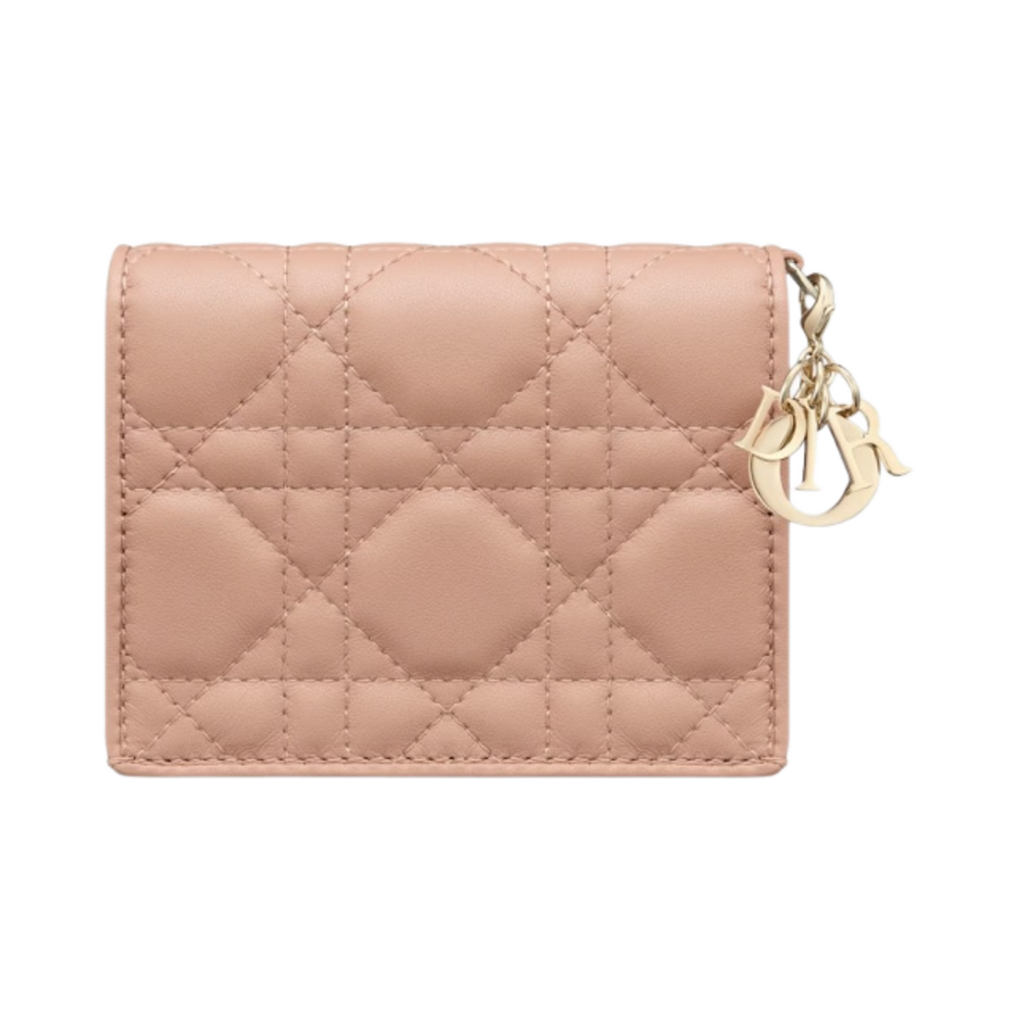 Dior Mini Lady Wallet Cannage Lambskin Rose Des Vents