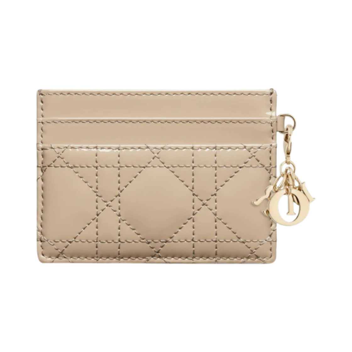 Dior Lady Five Slot Card Holder Patent Cannage Calfskin Sand