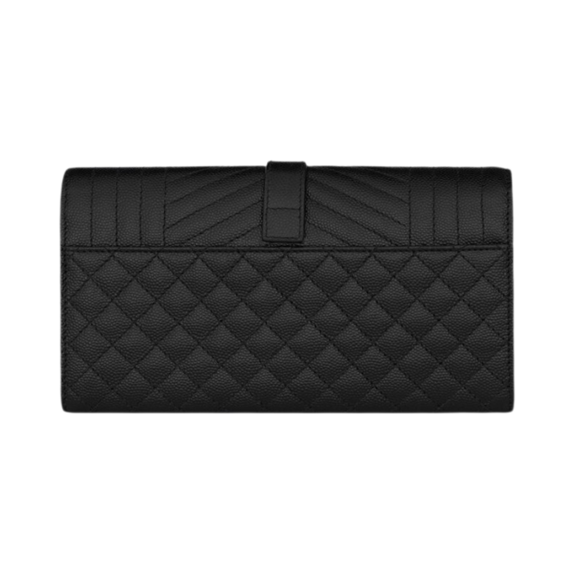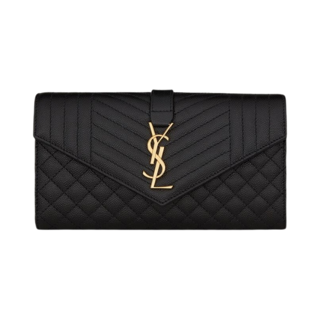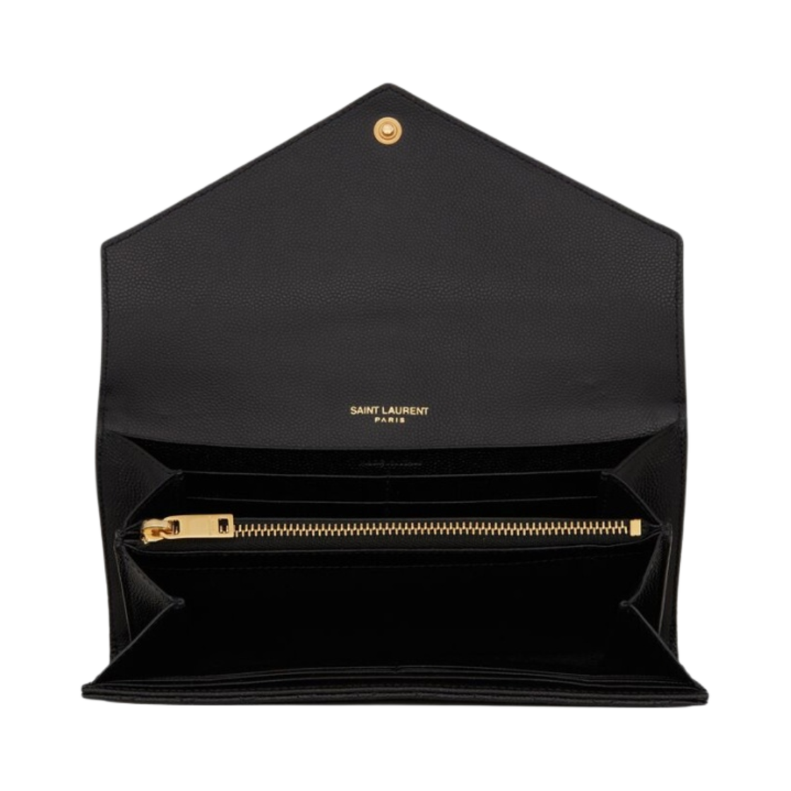 Saint Laurent Envelope Large Flap Wallet in Grain De Poudre Embossed Leather Black