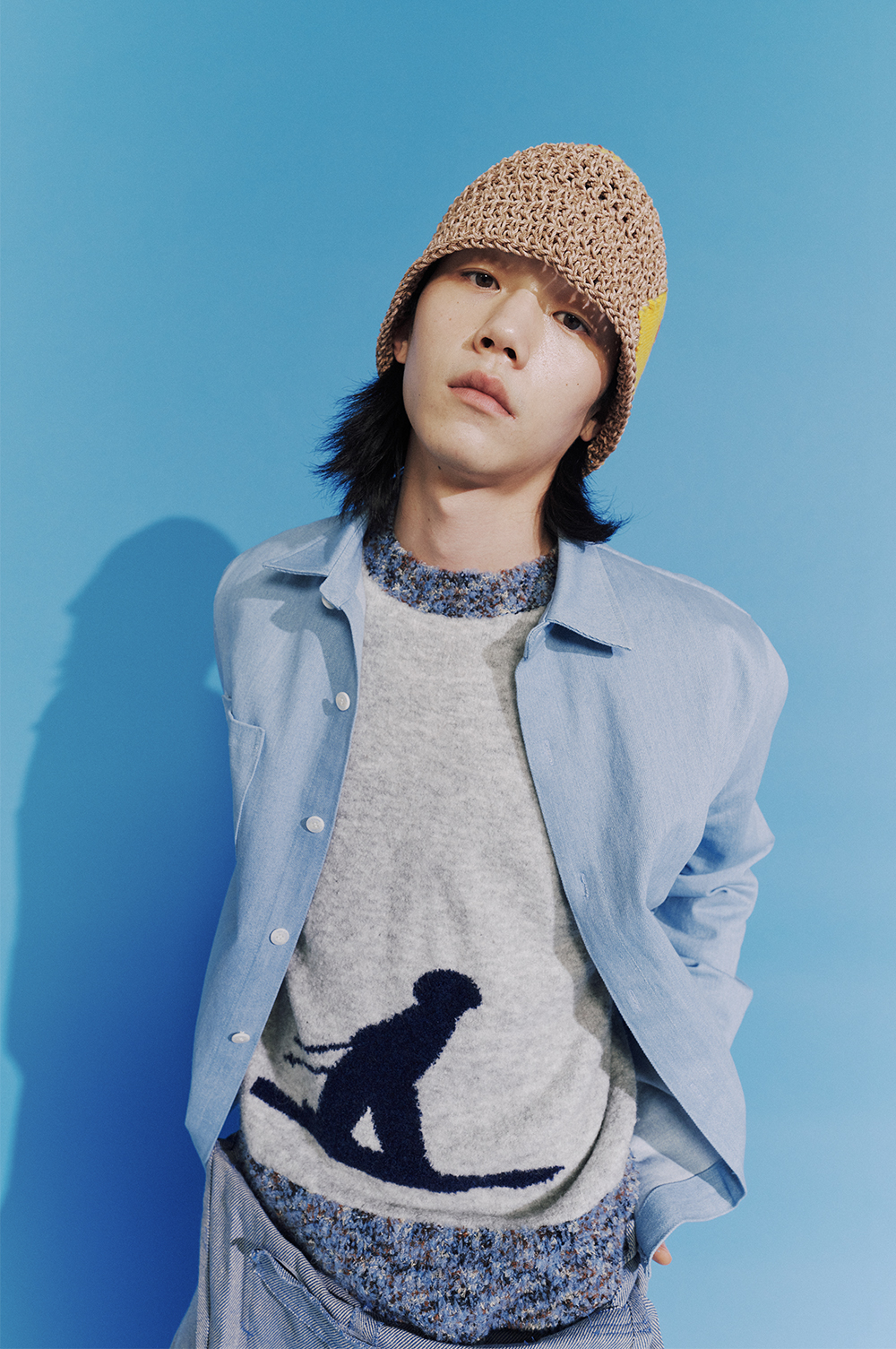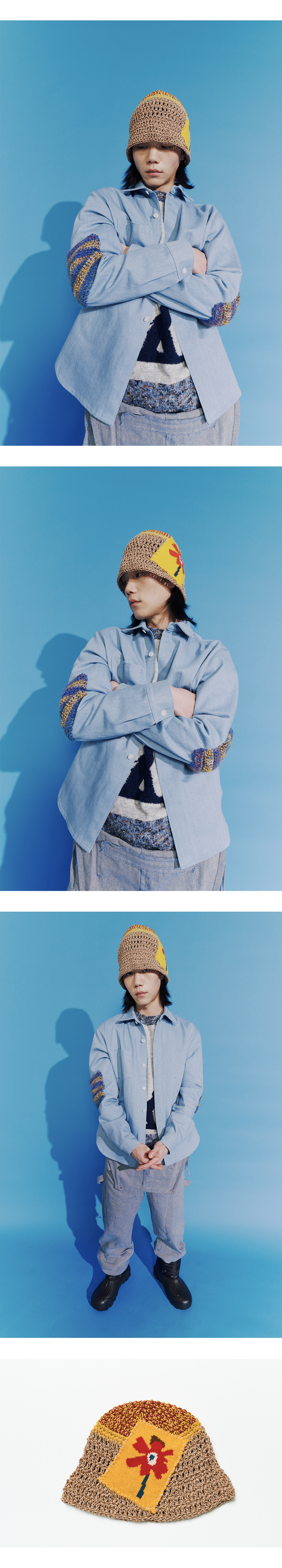 - 100% 핸드메이드입니다. - 미수아바흐브의 시그니처 버킷의 봄/여름 버전입니다. - 니트 패치를 핸드 스티칭 한 디테일이 포인트입니다. - 메탈릭한 실로 제작된 헤드 톱 부분과 바디 부분의 배색이 특징입니다.