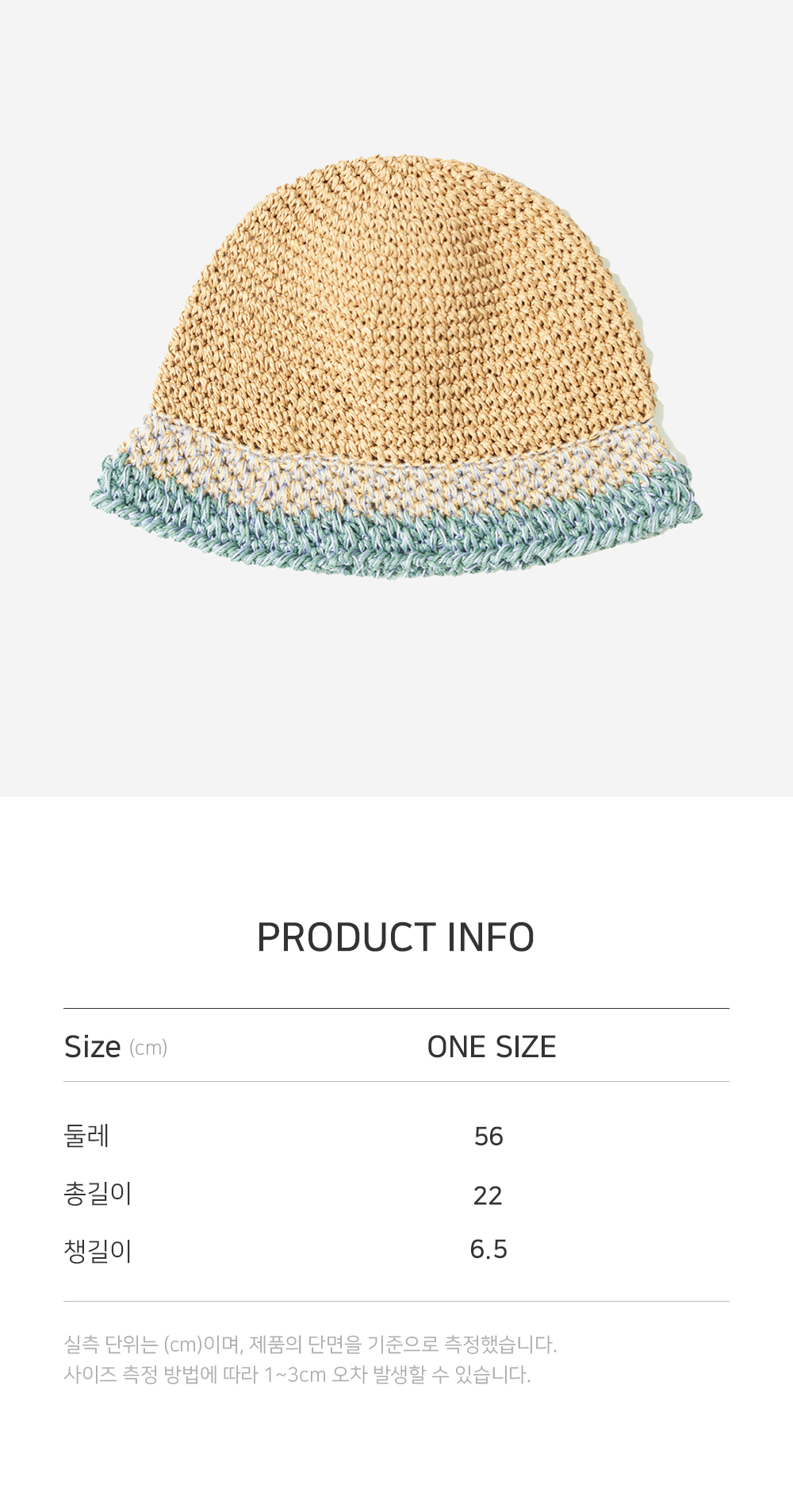 -100% 핸드메이드 제품입니다. - 시원한 소재로 짜여진 베이직한 여름 버킷 햇입니다. - 모자 아랫부분의 그라데이션 짜임으로 다양한 스타일링이 가능합니다.