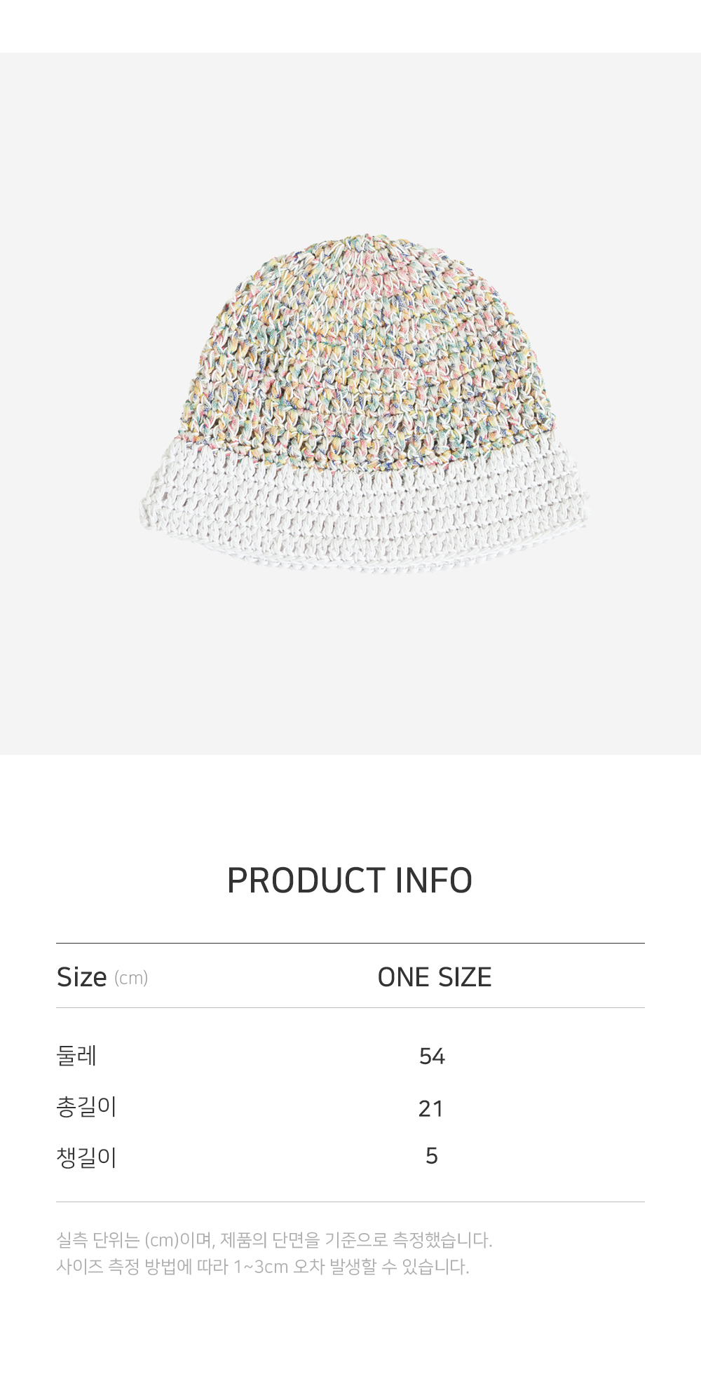 니트짜임의 구조에 따라 제품 사이즈가 1~2cm 정도 차이 날 수 있습니다.