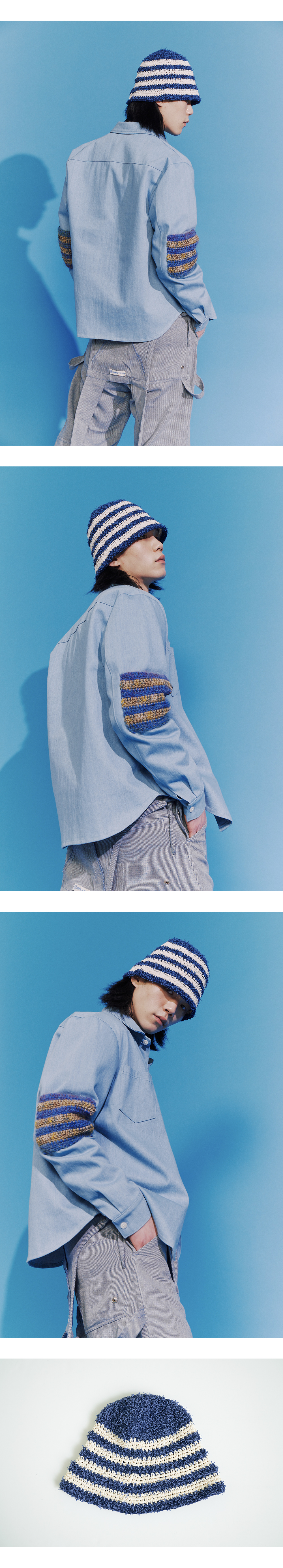 - 100% 핸드메이드입니다. - 배색 컬러 블록 스트라이프가 특징인 서머 버킷 햇입니다. - 시원하고 탄탄한 소재를 사용하여, 형태를 유지하며 착용하실 수 있습니다. * 제품의 사이즈가 변동되어 실측 사이즈로 참고 바랍니다.