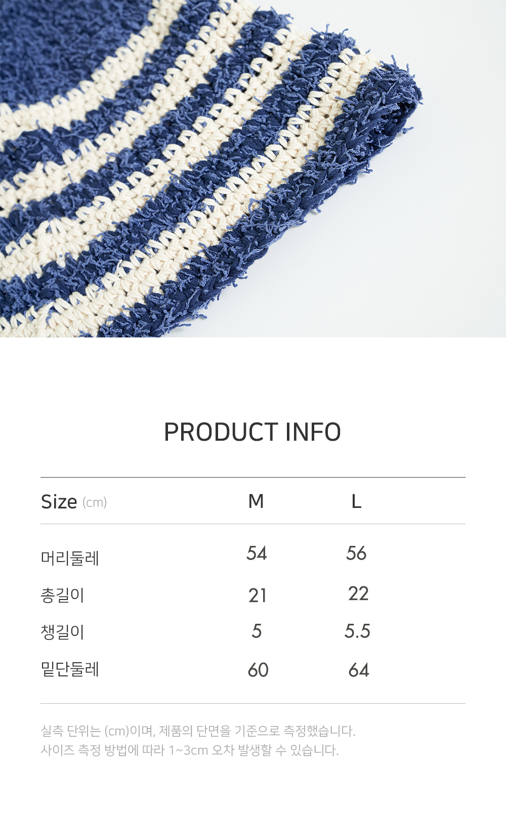 니트짜임의 구조에 따라 제품 사이즈가 1~2cm 정도 차이 날 수 있습니다.