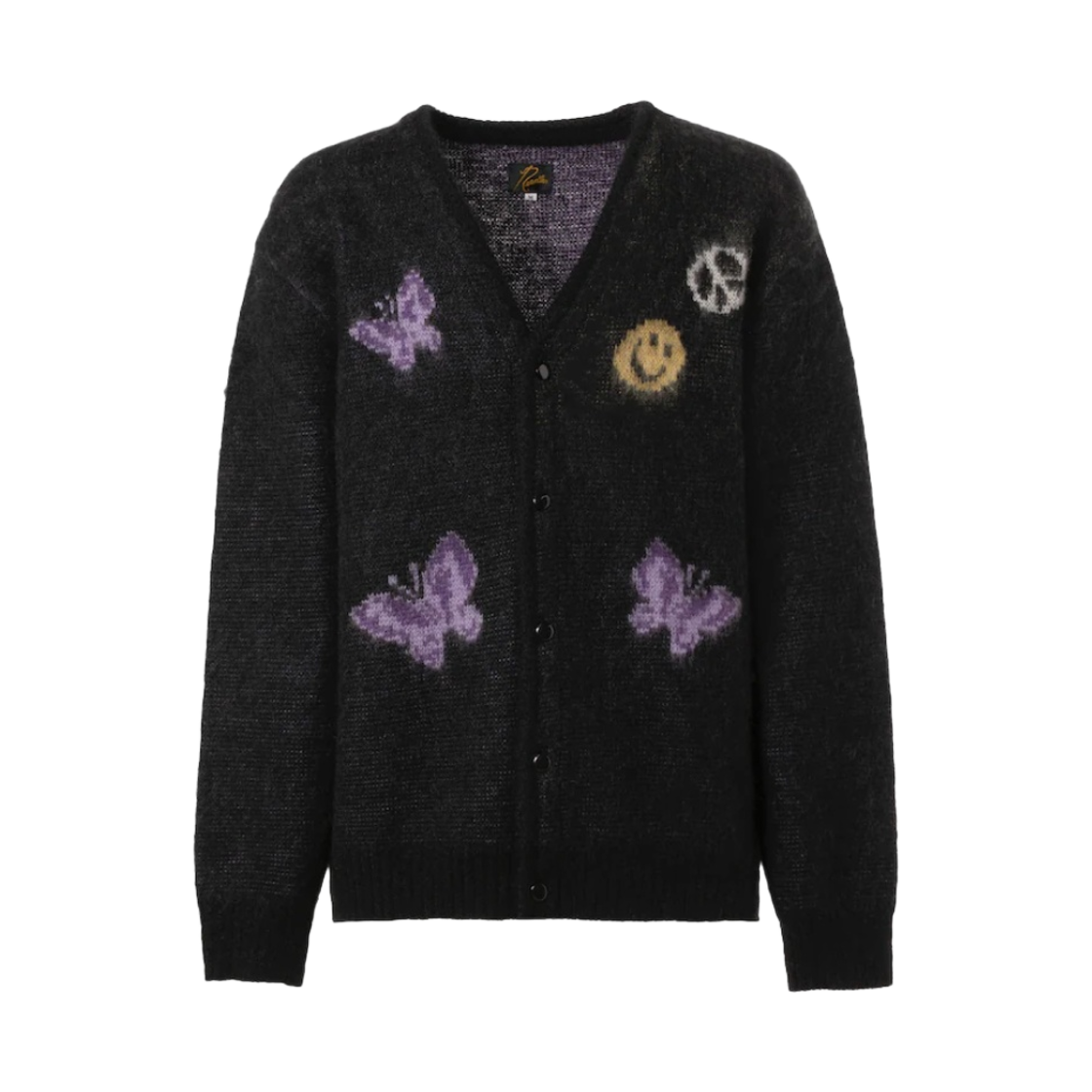 Needles x Nubian Mohair Pappillon Smile & Peace Cardigan Black