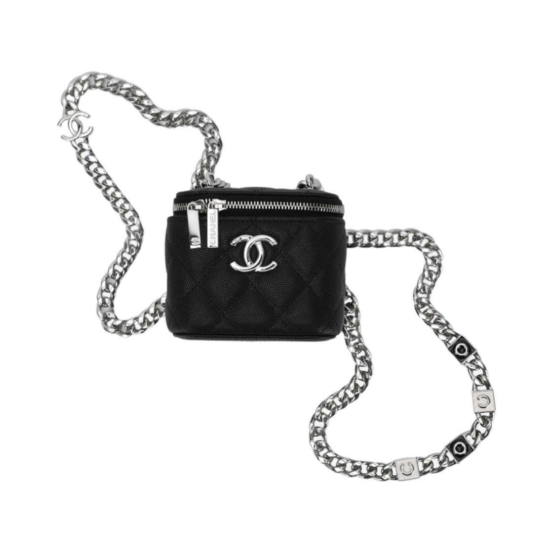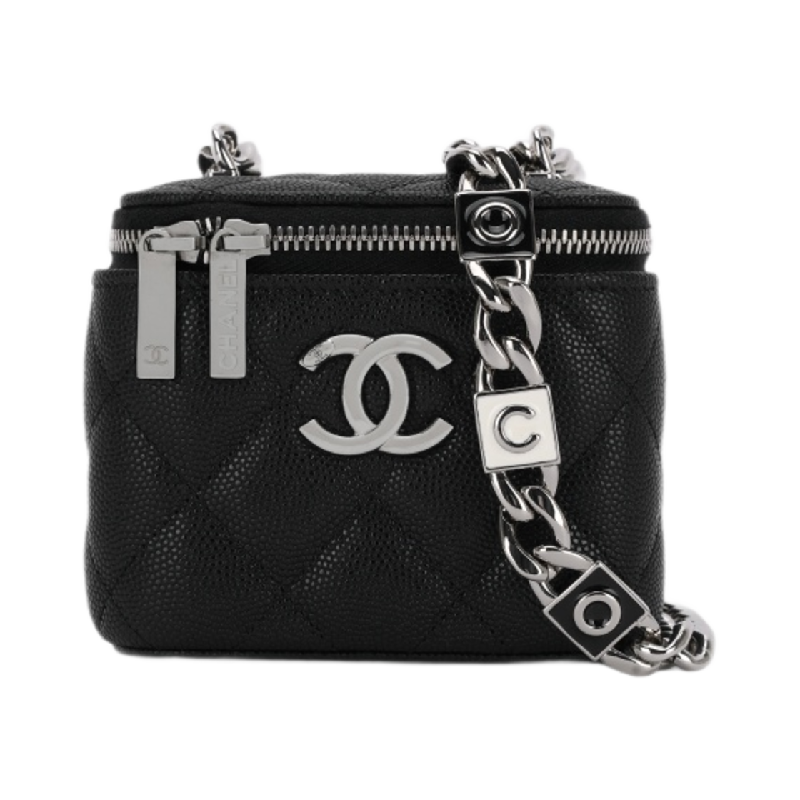 샤넬 체인 달린 미니백 샤이니 그레인드 카프스킨 & 실버 메탈 블랙