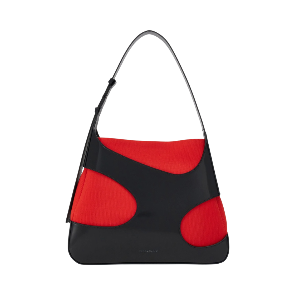 Ferragamo Large Shoulder Bag with Cut-Out Detailing Black Flame Red
