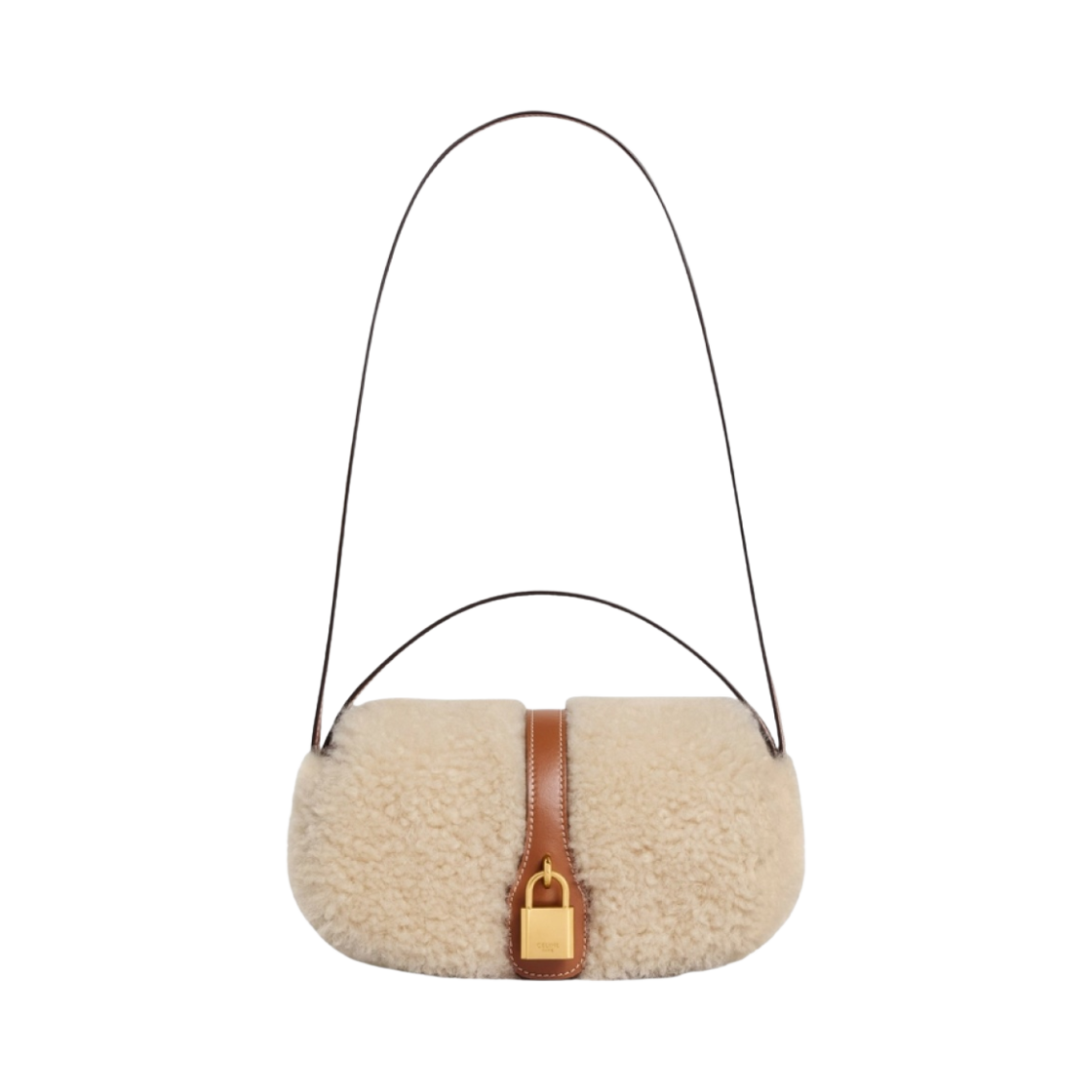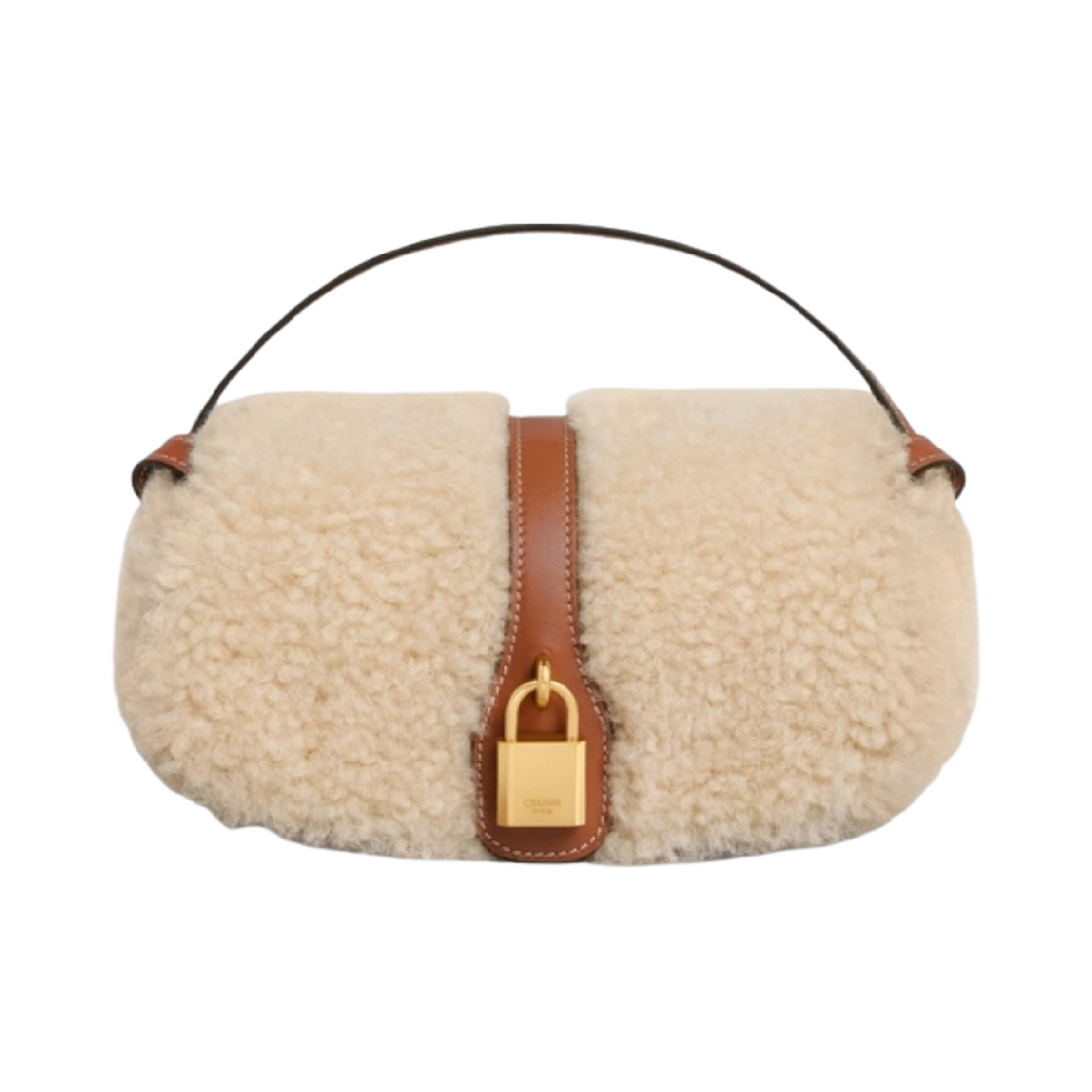 Celine Clutch on Strap Tabou in Shearling and Calfskin Natural Tan