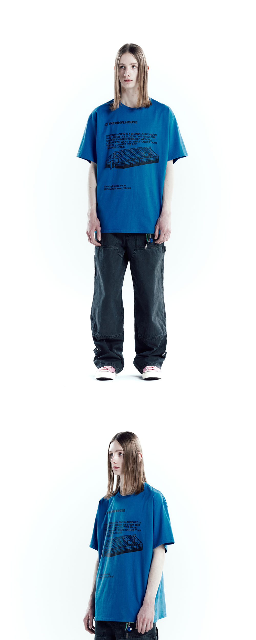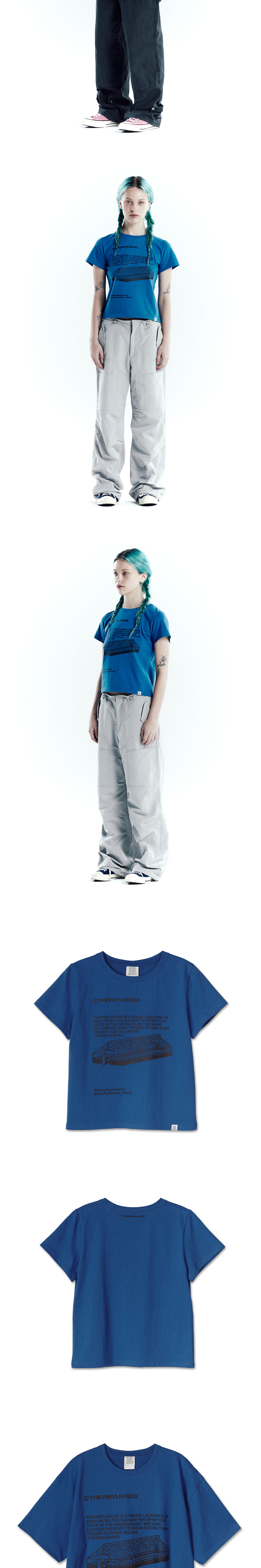 더바이닐하우스 슬로건 레터링 티셔츠 블루