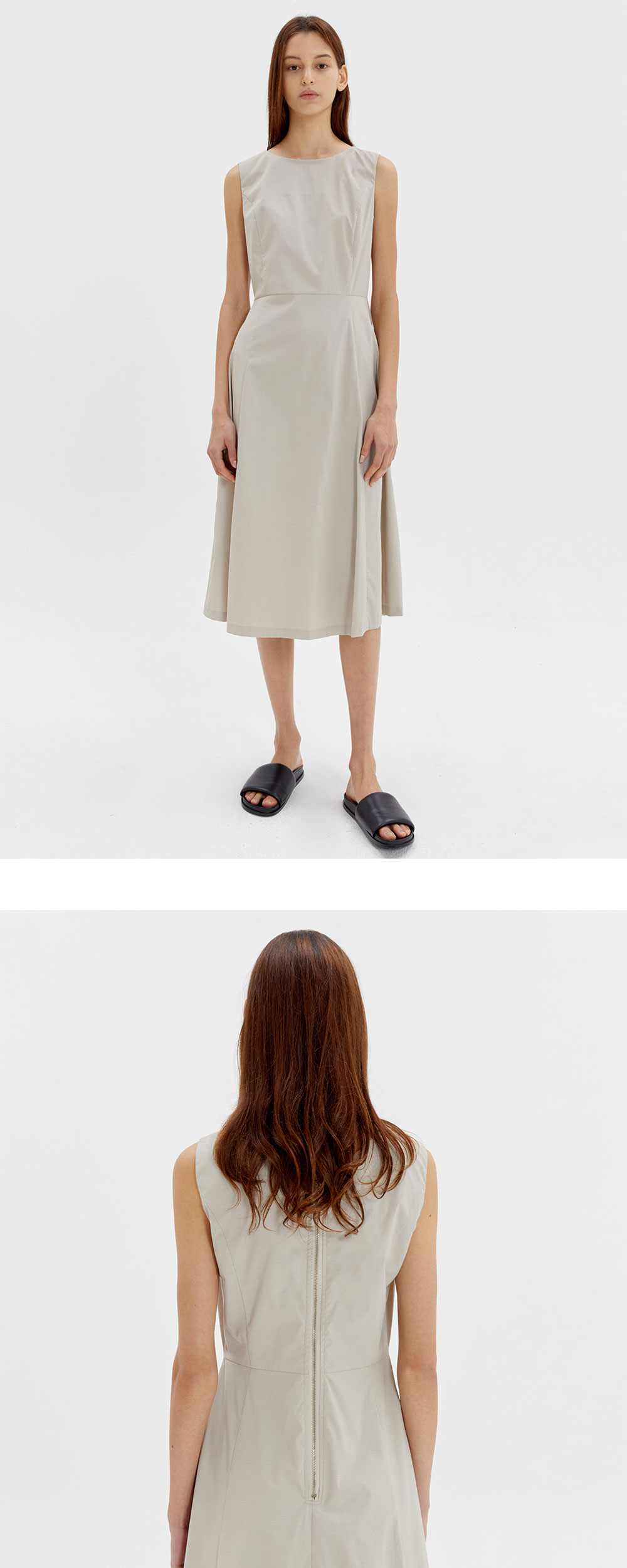 스판이 함유되어 활동성이 높은 페미닌한 라인의 드레스입니다. 바스트부터 떨어지는 A라인 디자인으로 슬림한 실루엣을 연출합니다.