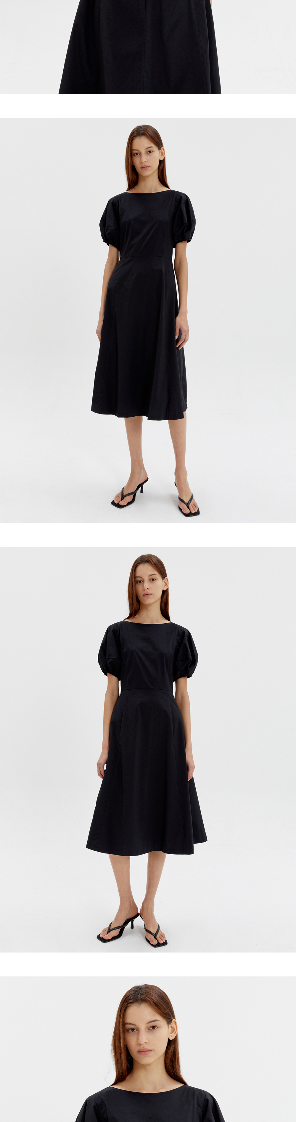 스판이 함유되어 활동성이 높은 페미닌한 라인의 드레스입니다. 풍성한 볼륨이 돋보이는 소매와 바스트부터 떨어지는 A라인 디자인으로 슬림한 실루엣을 연출합니다.