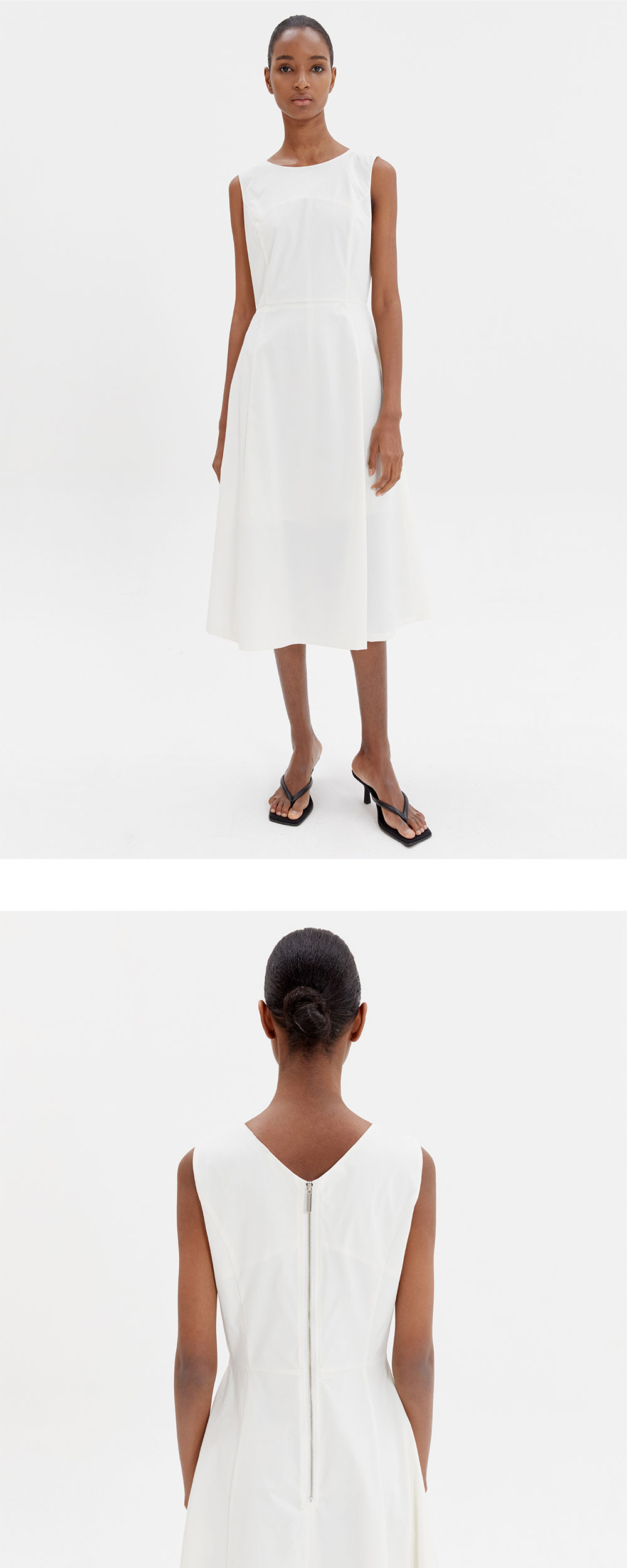 스판이 함유되어 활동성이 높은 페미닌한 라인의 드레스입니다. 바스트부터 떨어지는 A라인 디자인으로 슬림한 실루엣을 연출합니다.