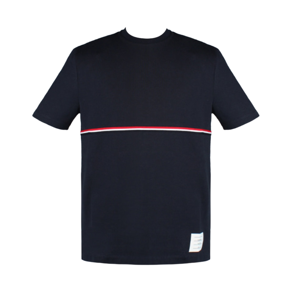 톰브라운 미드웨이트 저지 스트라이프 숏슬리브 티셔츠 네이비