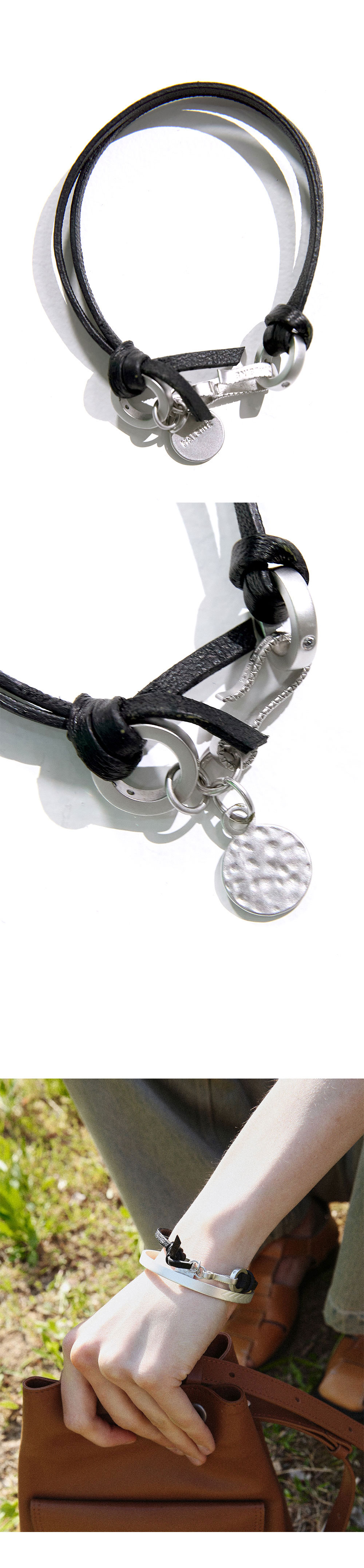 알렌느 레더 메탈 믹스 브레이슬릿 블랙